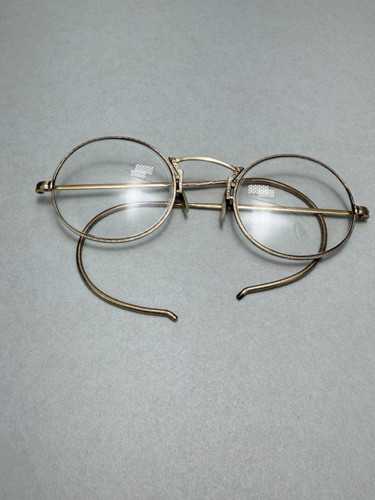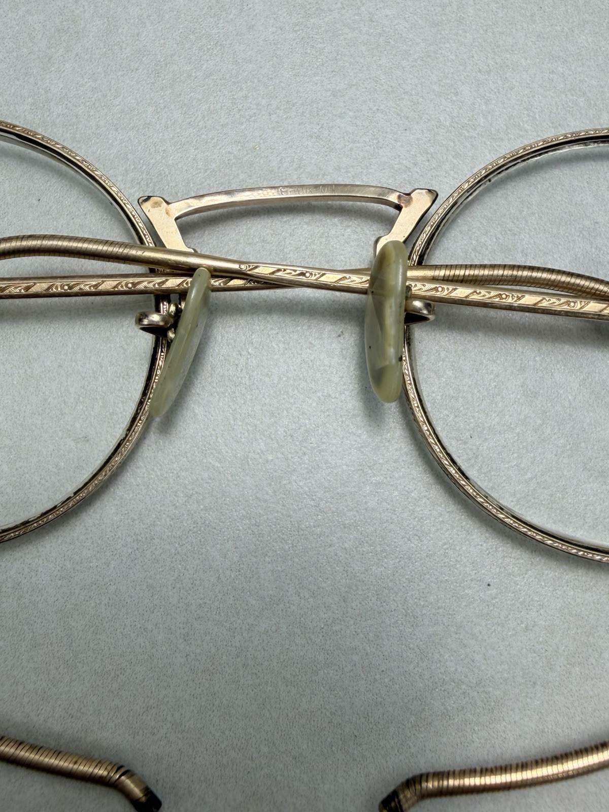 Antique Eyeglasses SHUR-ON Gold Filled Wire Rim Spectacles Ornate