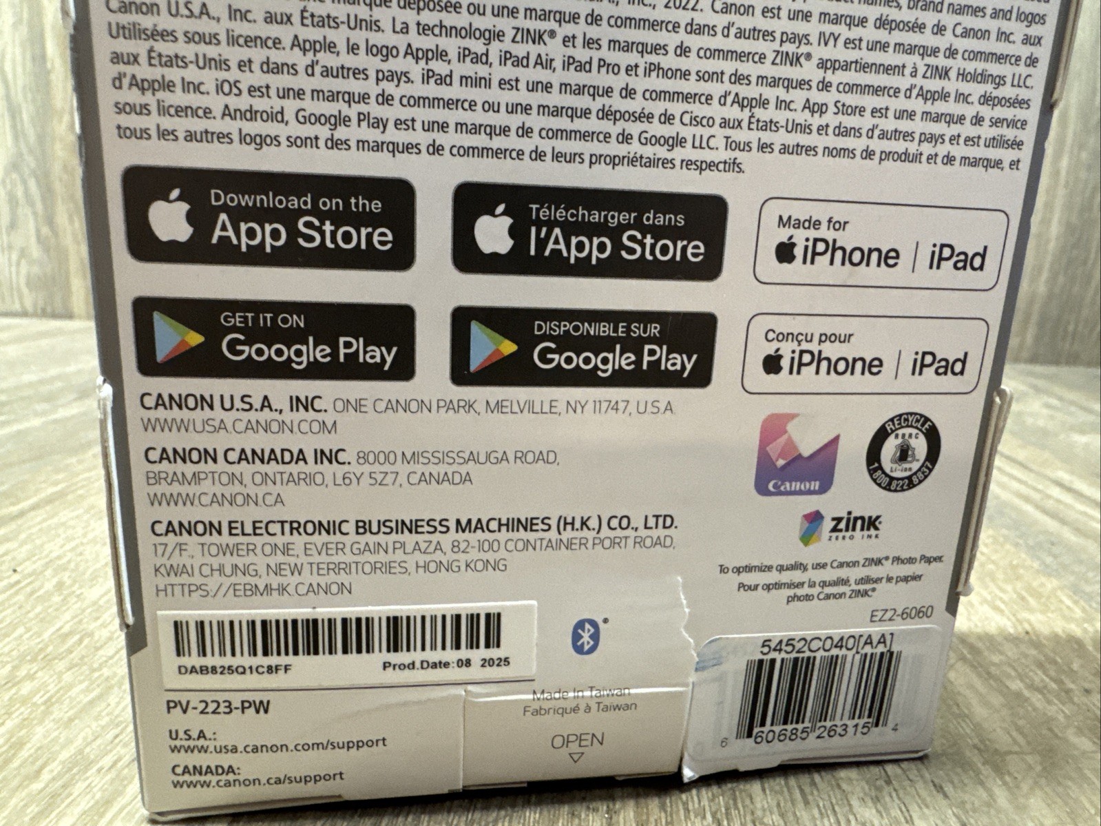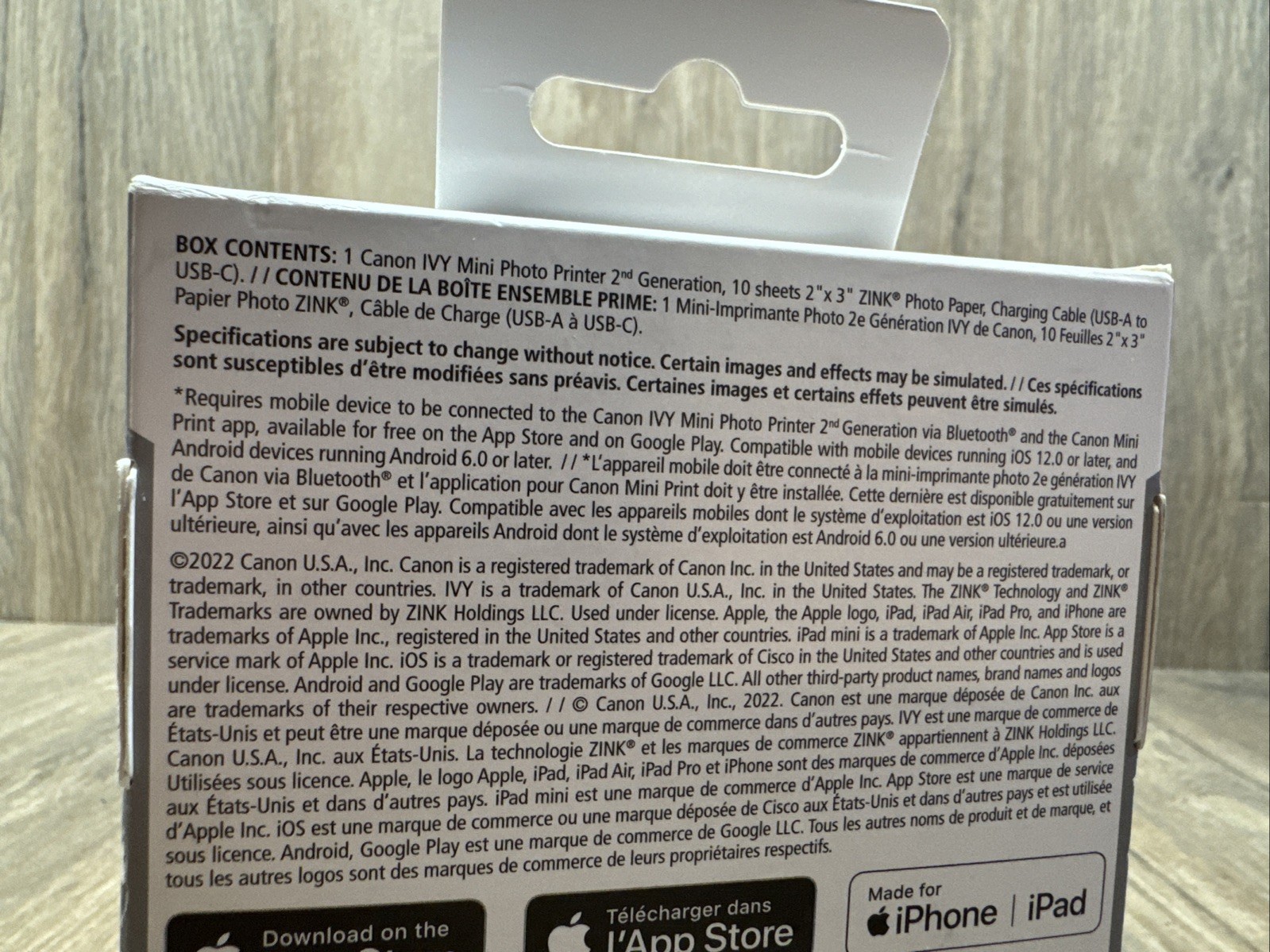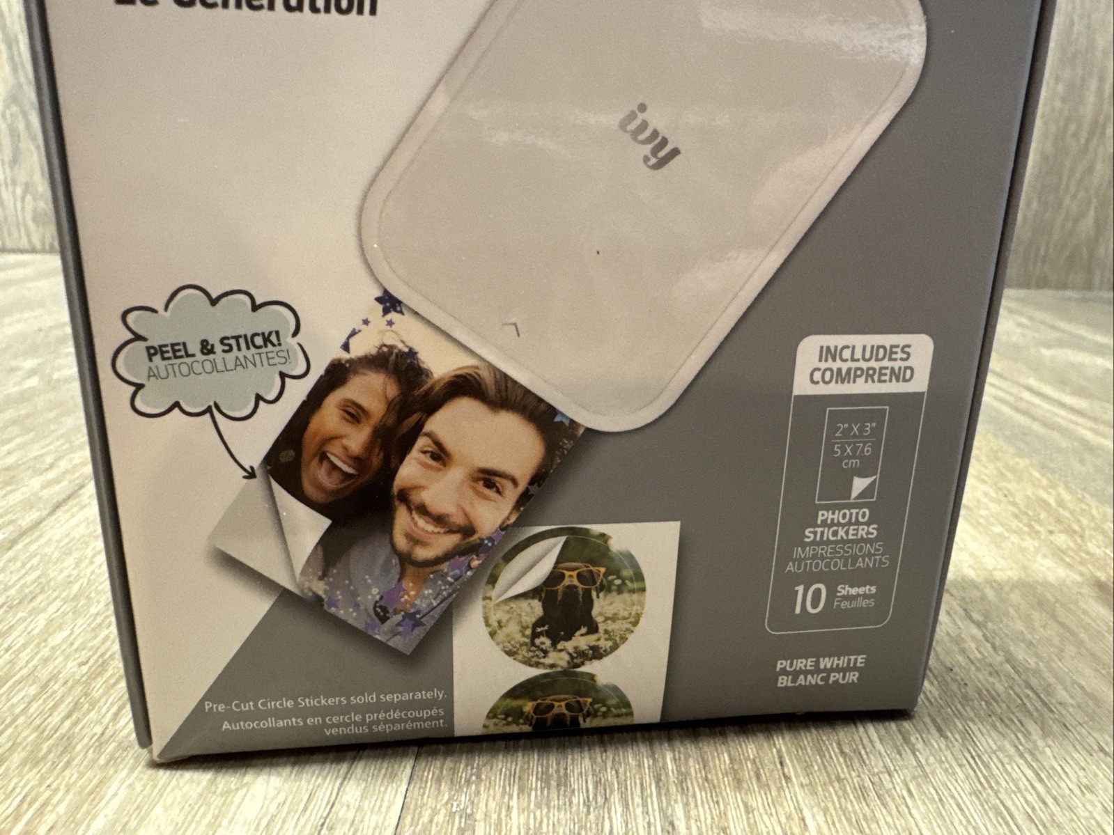 CANON IVY Mini Photo Printer 2nd Generation Pure White W/10 Sheets Photo Paper