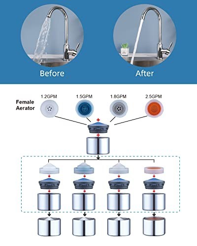 как выглядит 3 Pcs Kitchen Faucet Aerator Set, 1.2-2.5 GPM Flow Restrictors, 55/64" Female Th фото