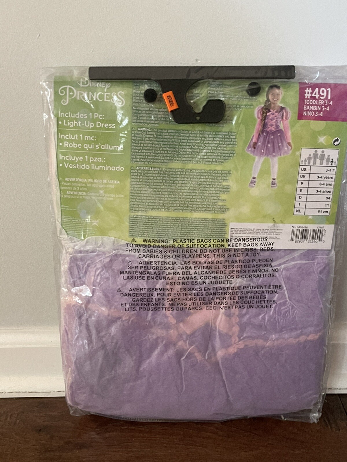 DISNEY PRINCESS Rapunzel Toddler Size 3-4 Light-Up Costume -new
