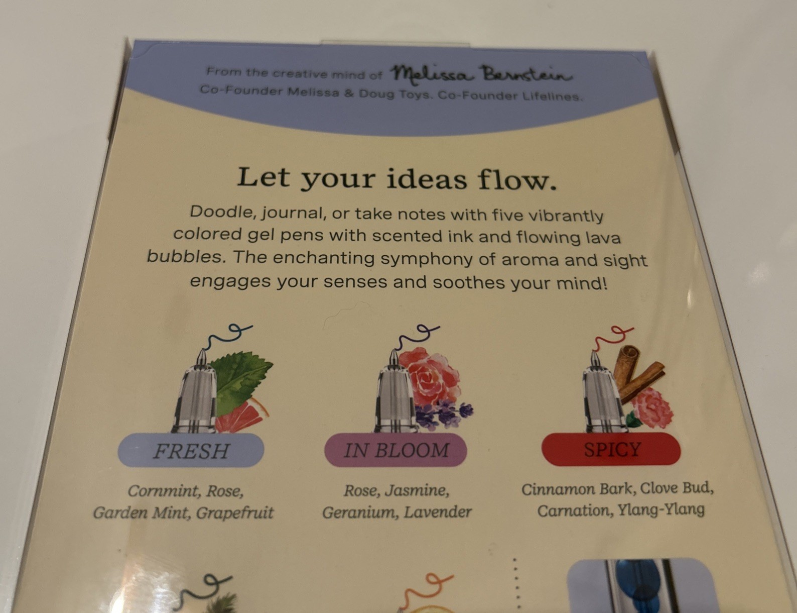 Lifelines Scented Lava Pens 5 Pack Colored Gel Pens Flowing Ink Aromatherapy NEW