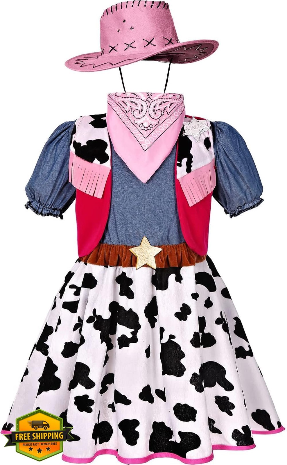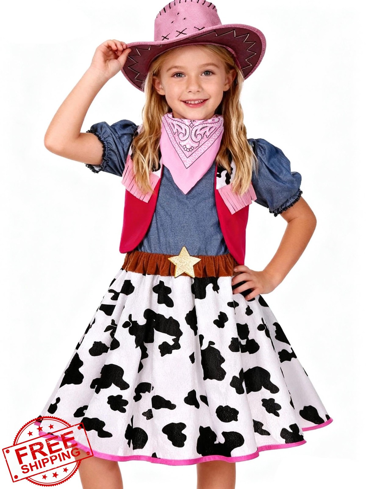 Girls Cowgirl Costume with Hat Dress Up Halloween Party