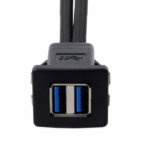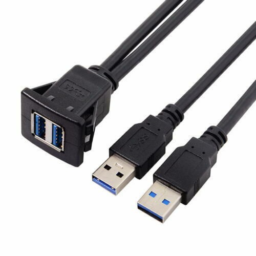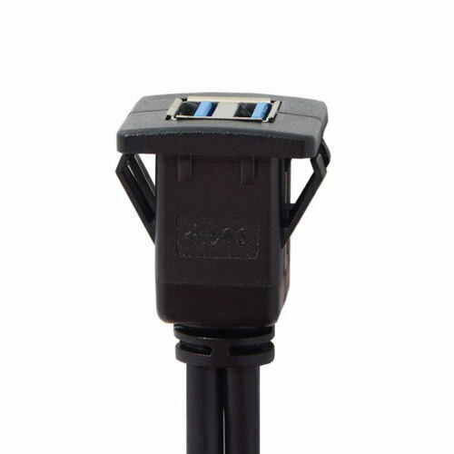 Dual USB 3.0 Extension Latch Mount Car AUX Cable 1m for Dashboard Panel