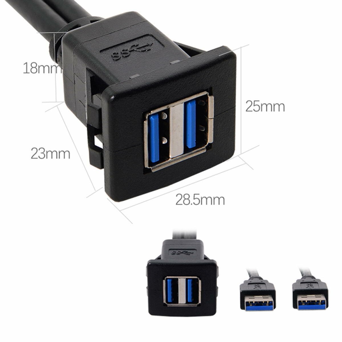 как выглядит Dual USB 3.0 Extension Latch Mount Car AUX Cable 1m for Dashboard Panel фото