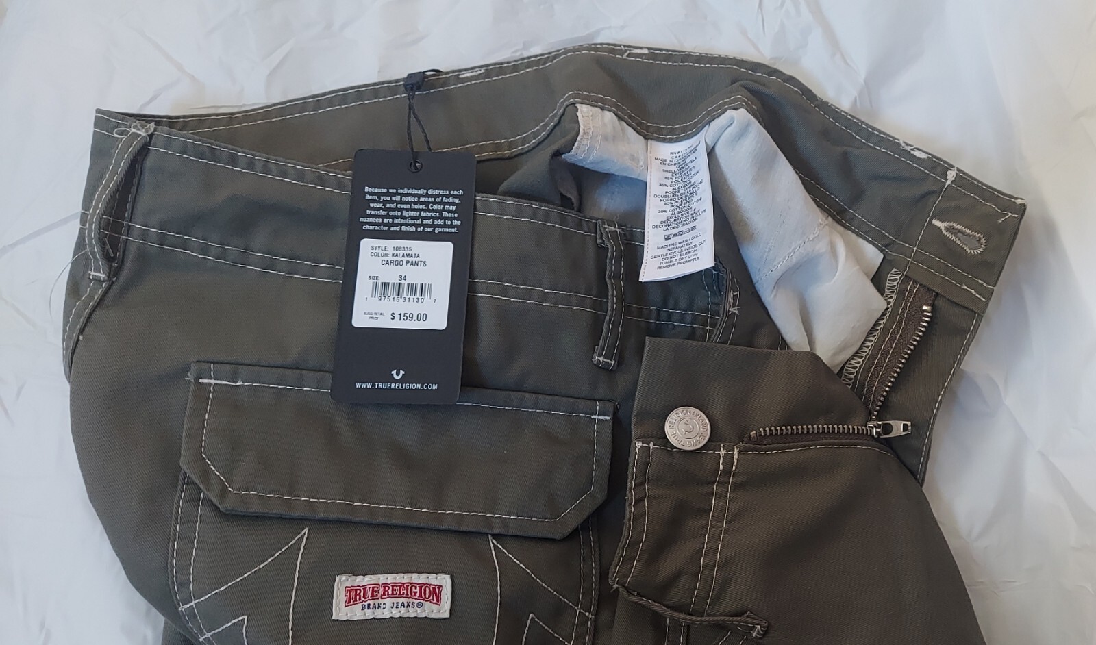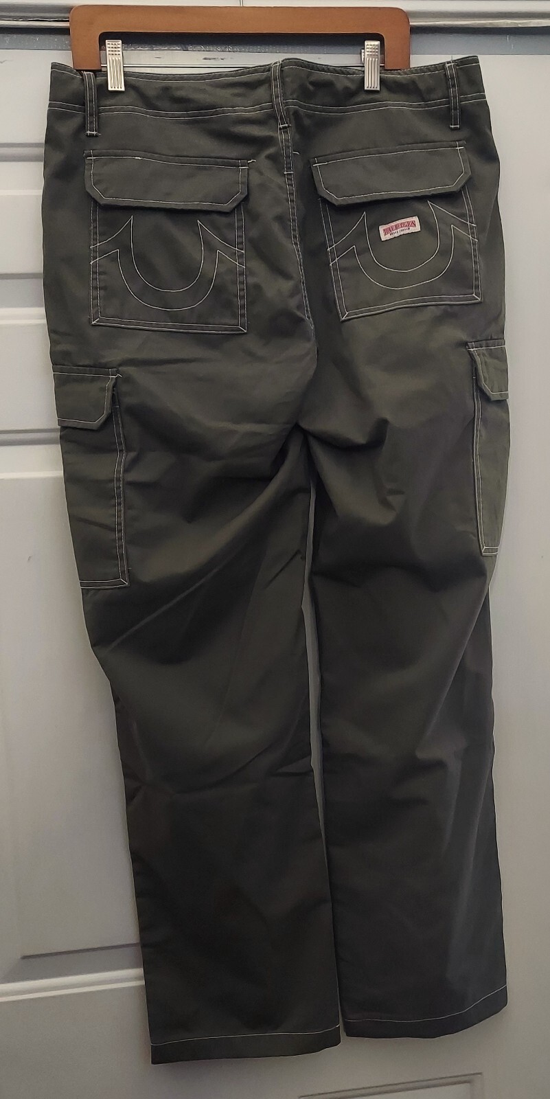 как выглядит TRUE RELIGION KALAMATA MENS GREEN POLY - COTTON CARGO PANTS SIZE 34X32 NWT 159 фото