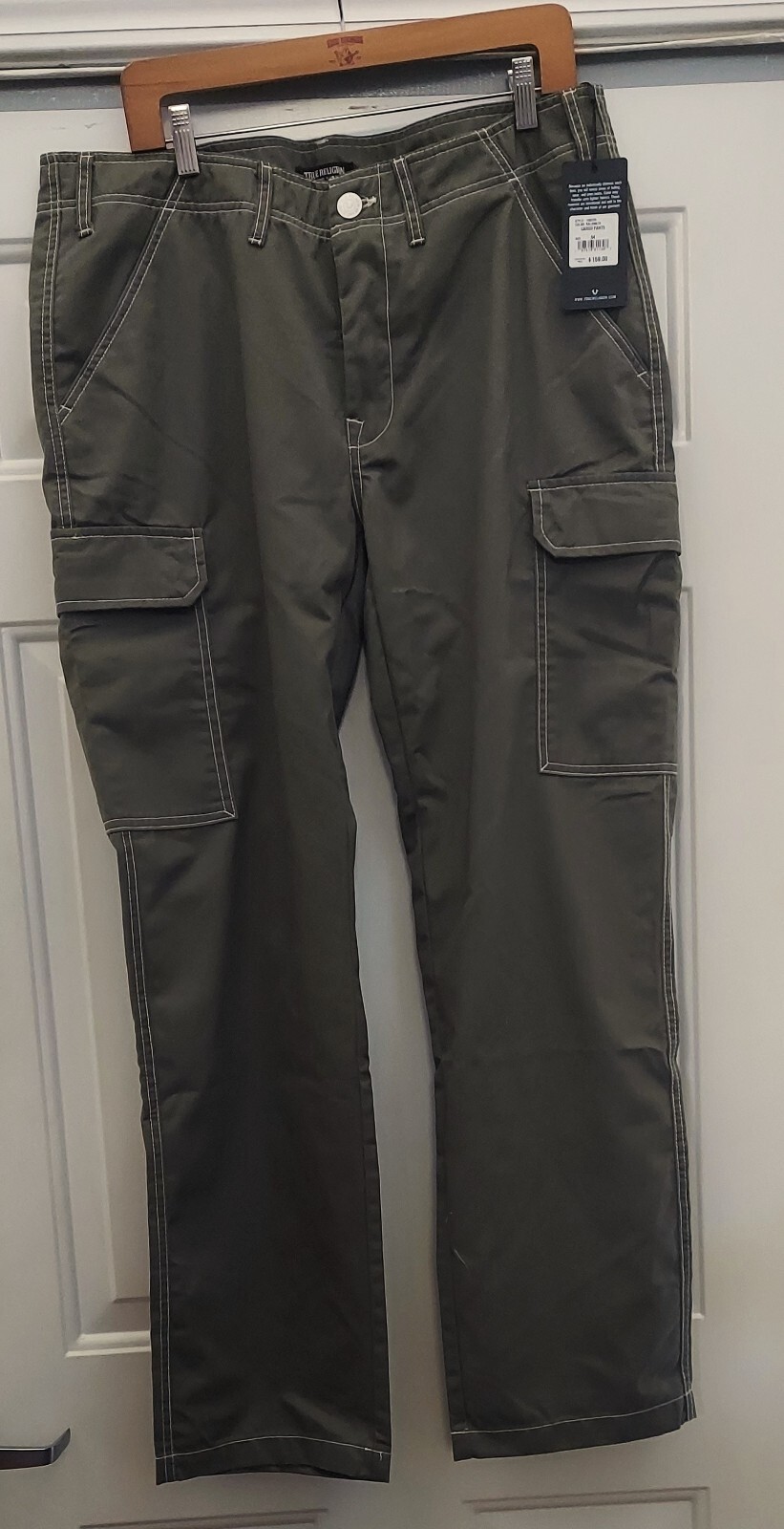 TRUE RELIGION KALAMATA MEN'S GREEN POLY - COTTON CARGO PANTS SIZE 34X32 NWT 159