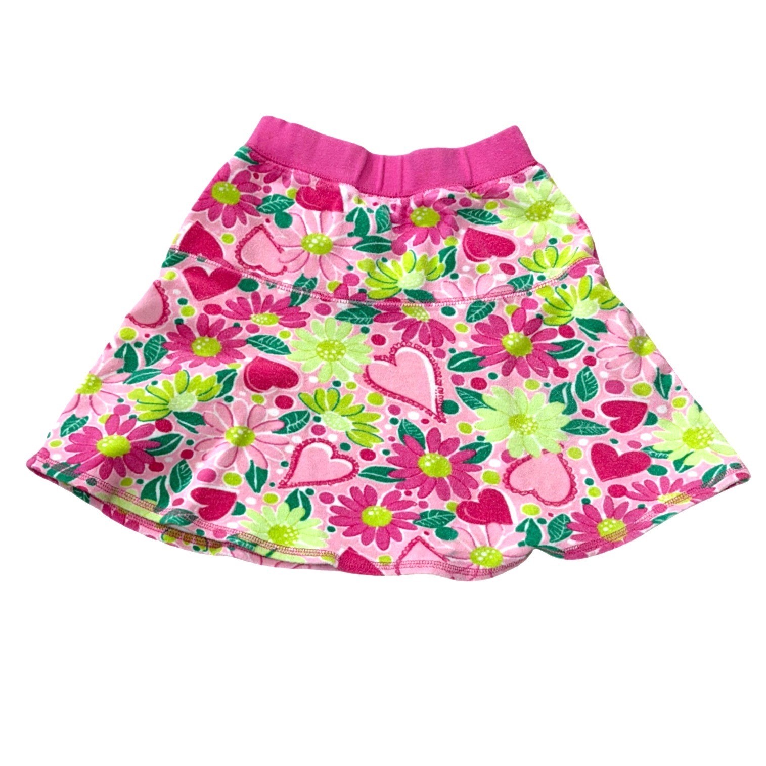 VINTAGE Lilly Pulitzer Girls Pink Floral Heart Print Size 7 Elastic Waist Skirt
