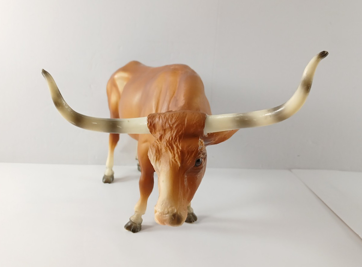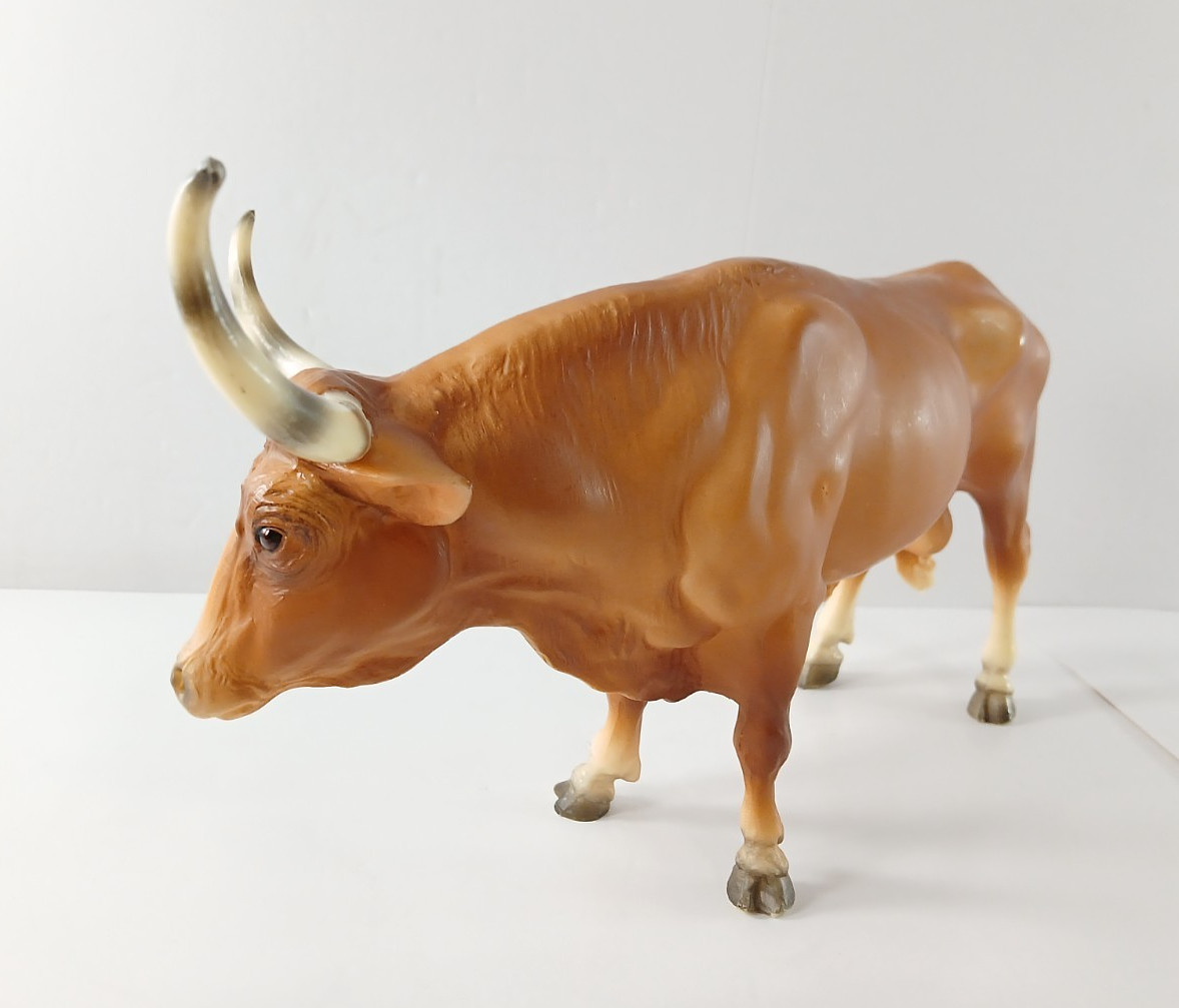 • Vintage Breyer TEXAS LONGHORN BULL Mold 75 Matte Brown Beef Cattle Figure