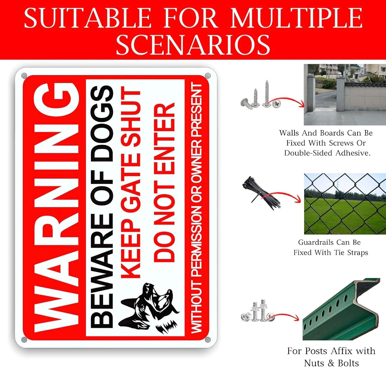 4 Pack Beware Of Dog Sign,12x8 Inches, With Reflective Material, Anti-Rust Alumi