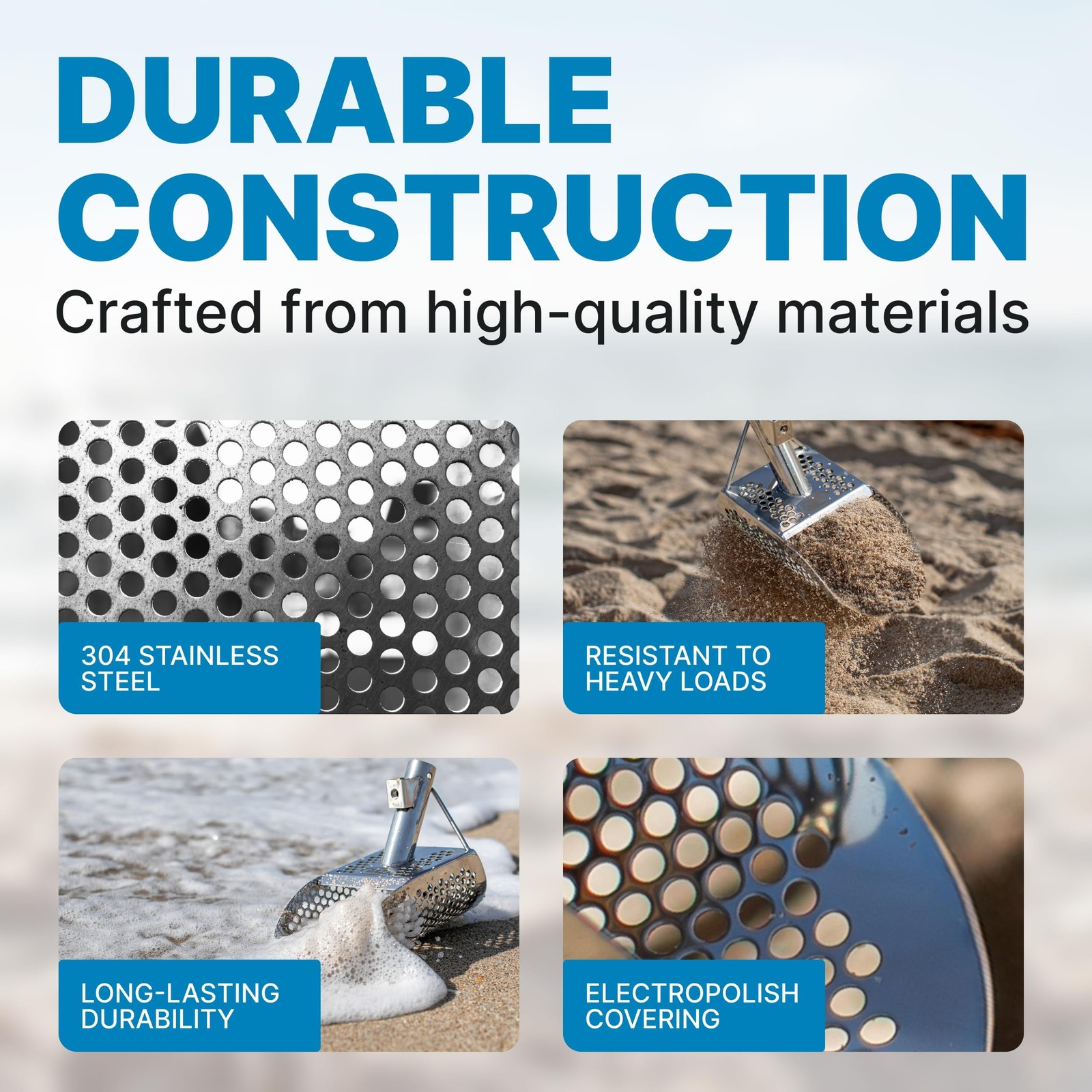 CKG Sand Scoop for Metal Detecting Heavy Duty Sand Sifter Scoop Stainless Ste...
