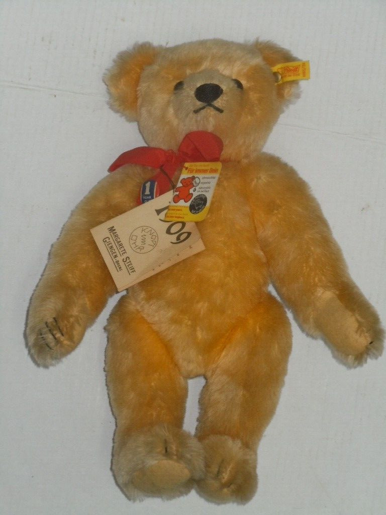 как выглядит 1980S STEIFF 1909 REPLICA GOLDEN TEDDY BEAR TAG BUTTON PIN HANG TAGS SIGNATURE фото
