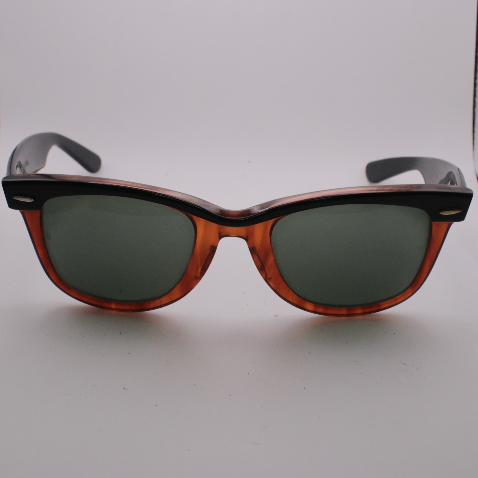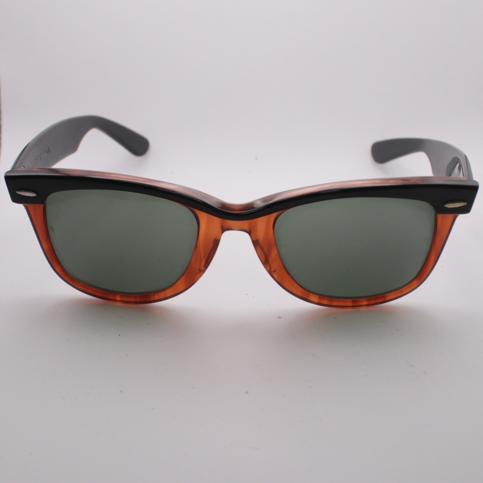 как выглядит Vintage 1990s Ray-Ban B L USA Wayfarer Brown/Black Acetate Square Sunglasses фото