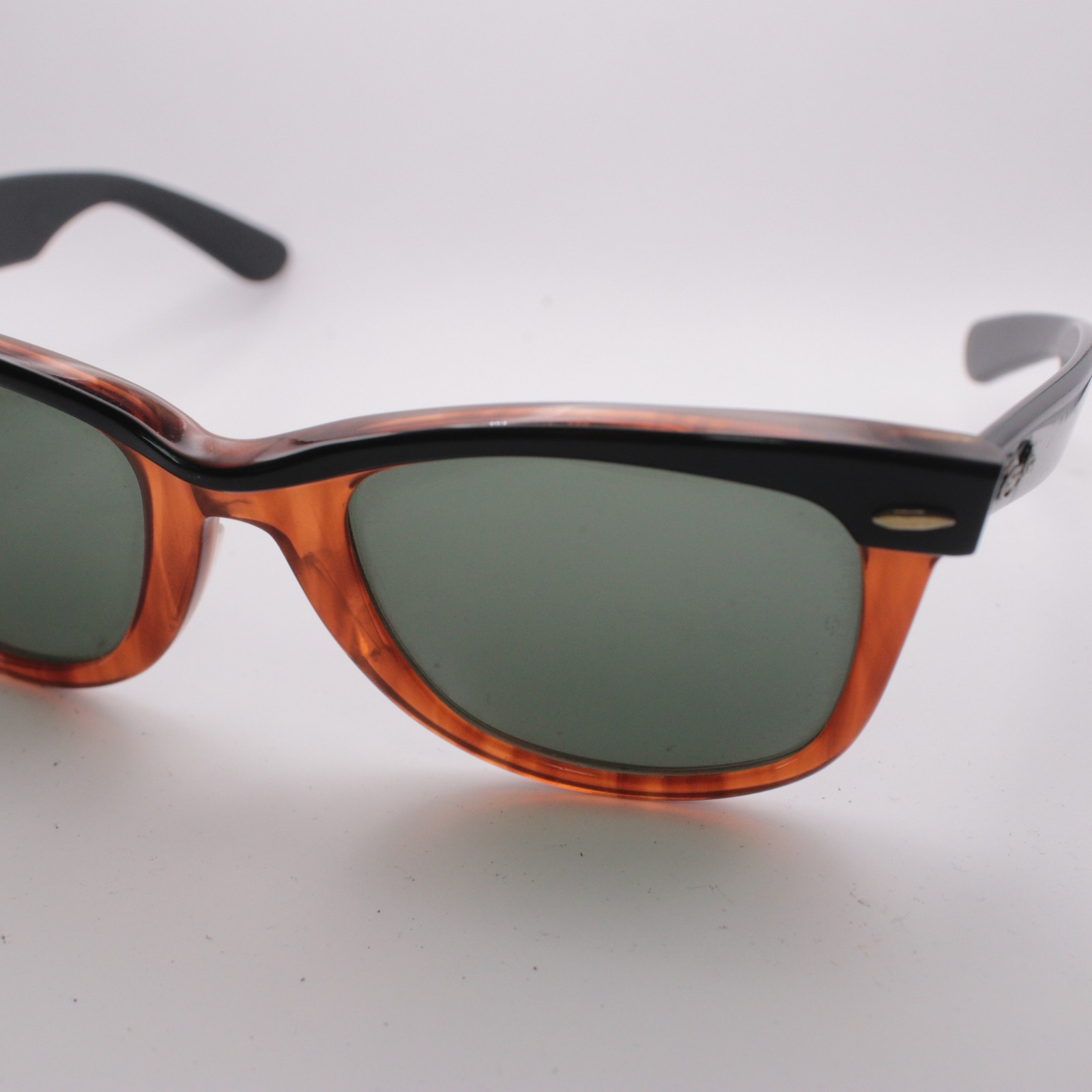 Vintage 1990s Ray-Ban B L USA Wayfarer Brown/Black Acetate Square Sunglasses