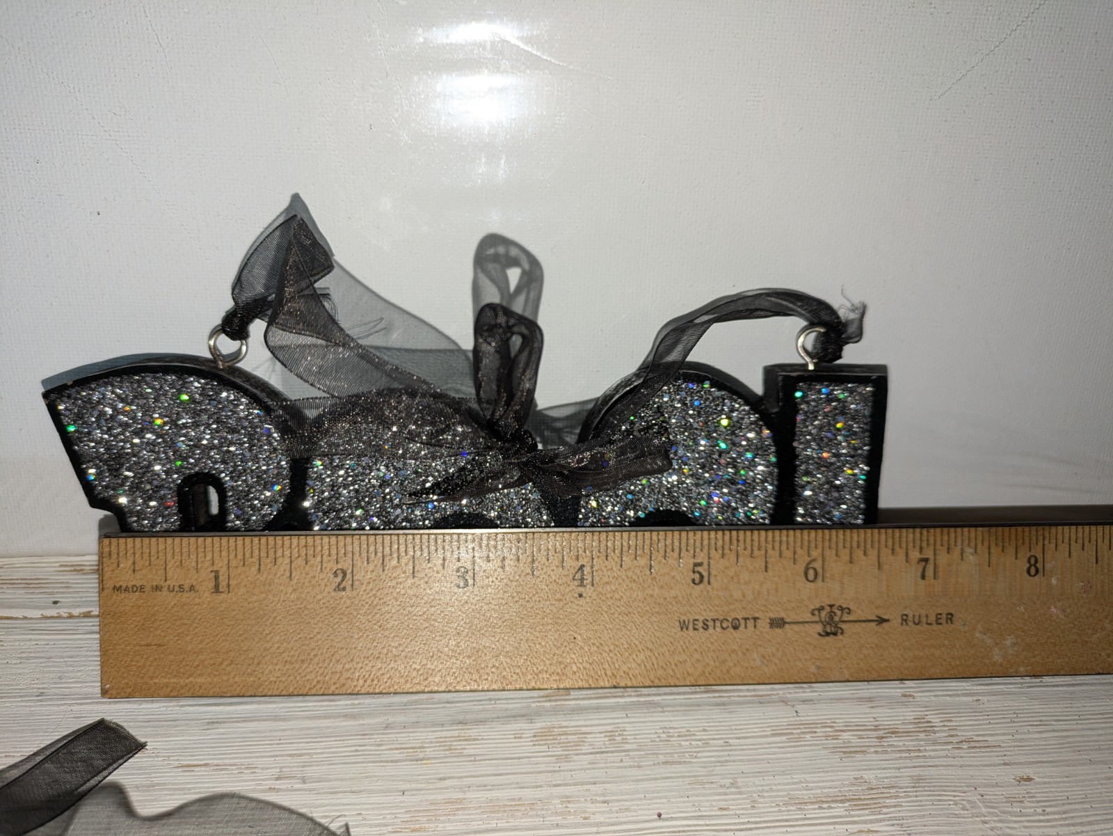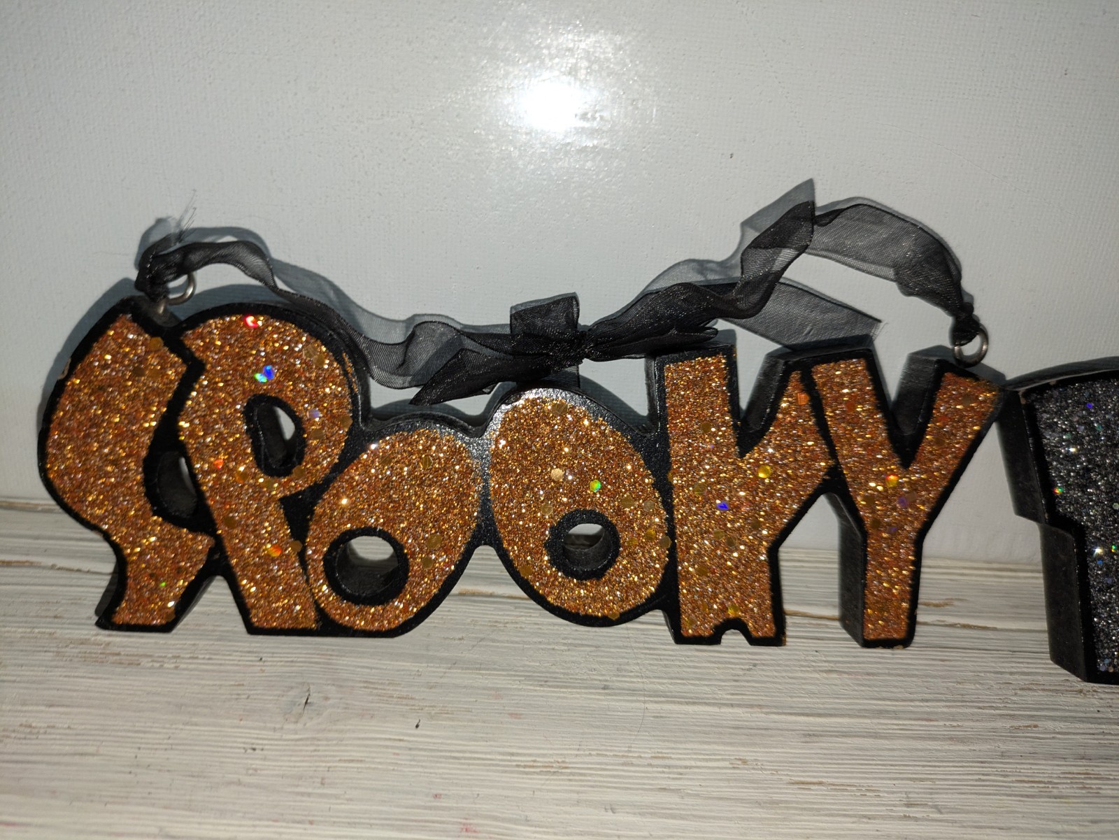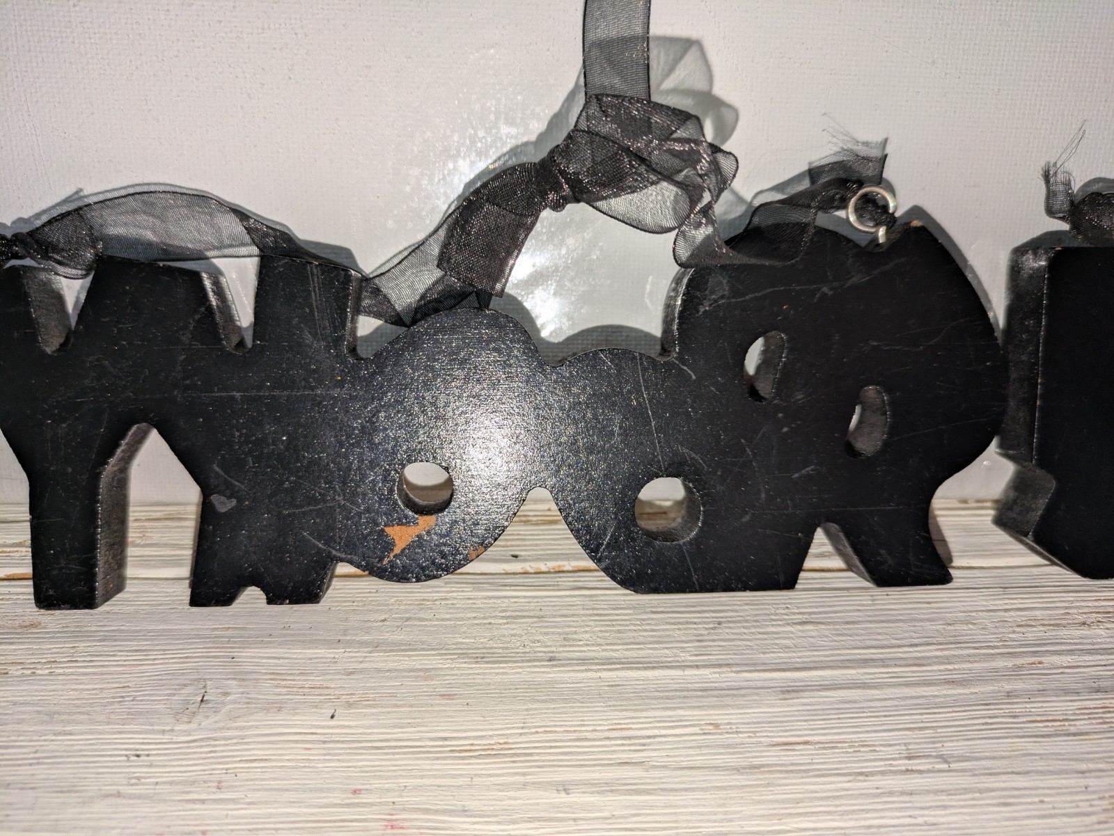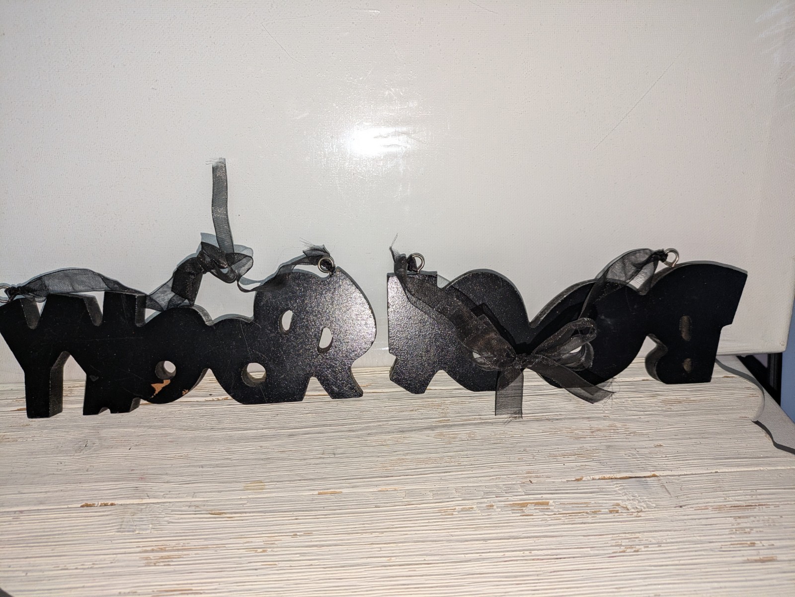 set of 2 Halloween ornaments spooky boo glitter wood home decor wood glitter