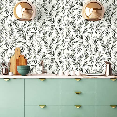 Green Leaf Peel and Stick Wallpaper Olive Leaf Contact 17.7 x 118.1 A-Green