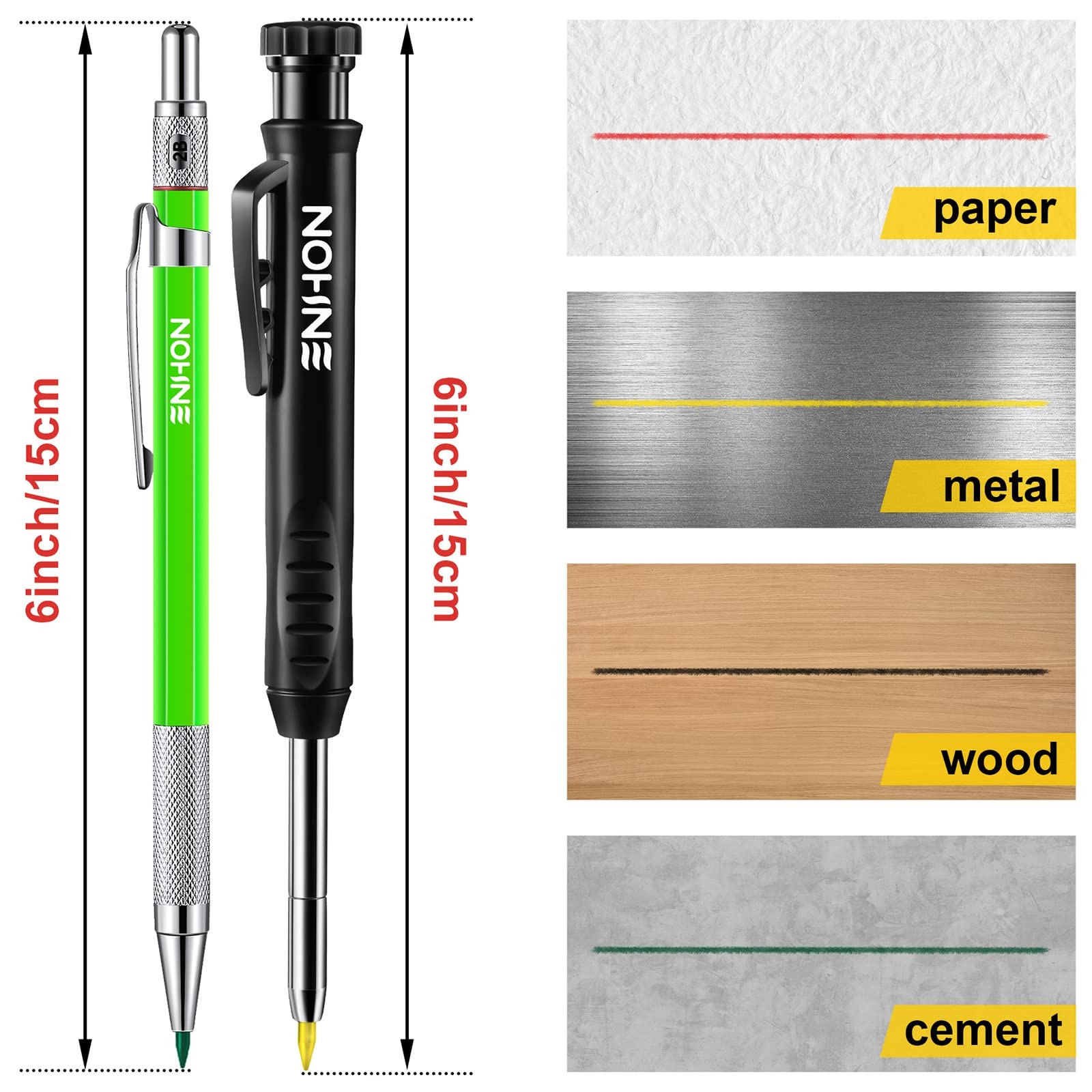 • Enhon 4 Pack Carpenter Pencil Set with Sharpener, Mechanical Woodworking Penc...