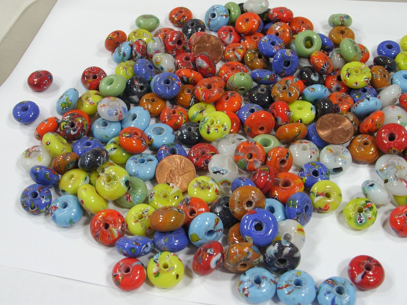 2 Pounds India Handmade Flat Rondelle Millifiori Glass Beads Bulk Lot RMP-23