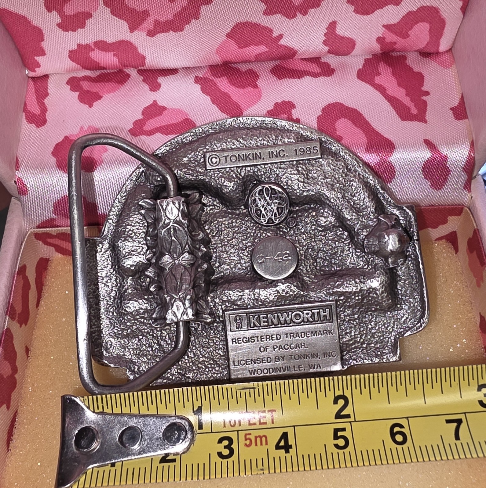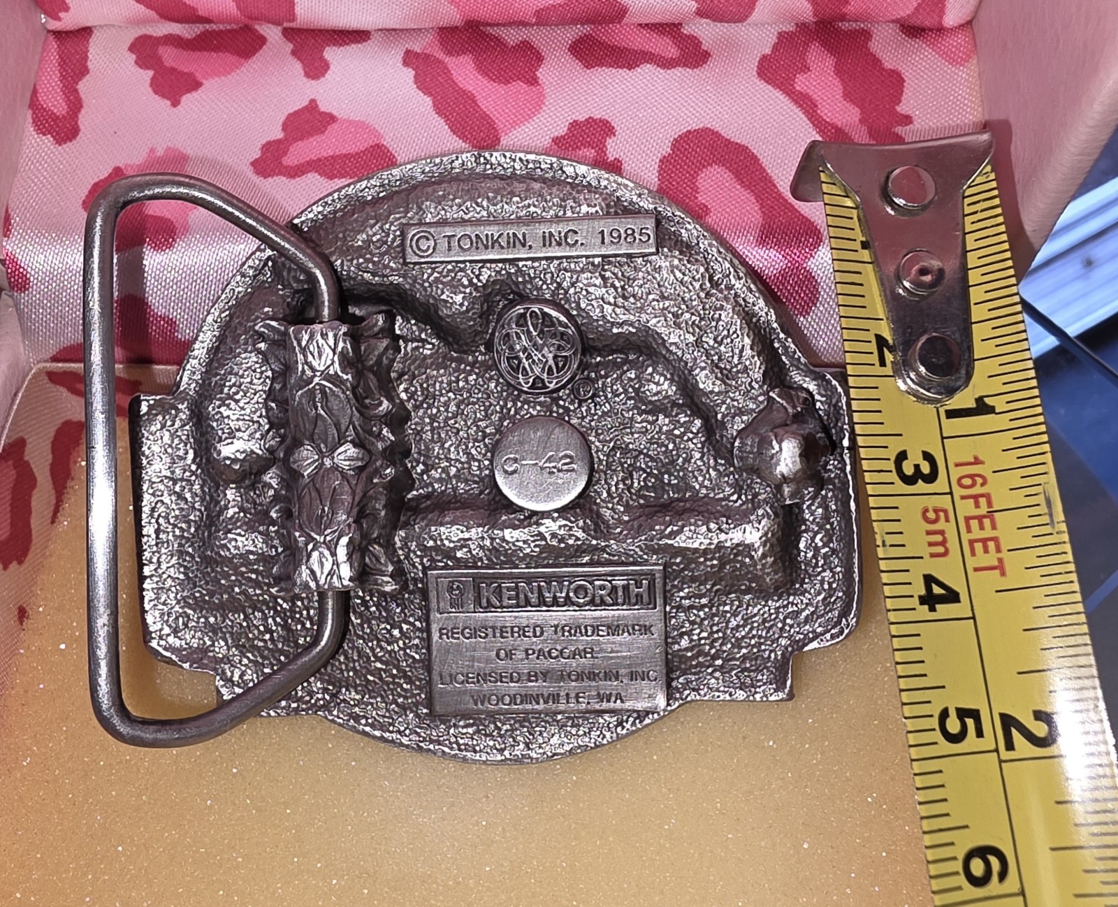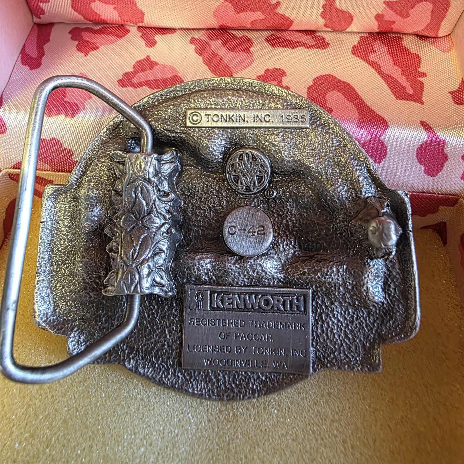 • vintage 1985 Kenworth truck belt buckle made by Tonkin Inc.