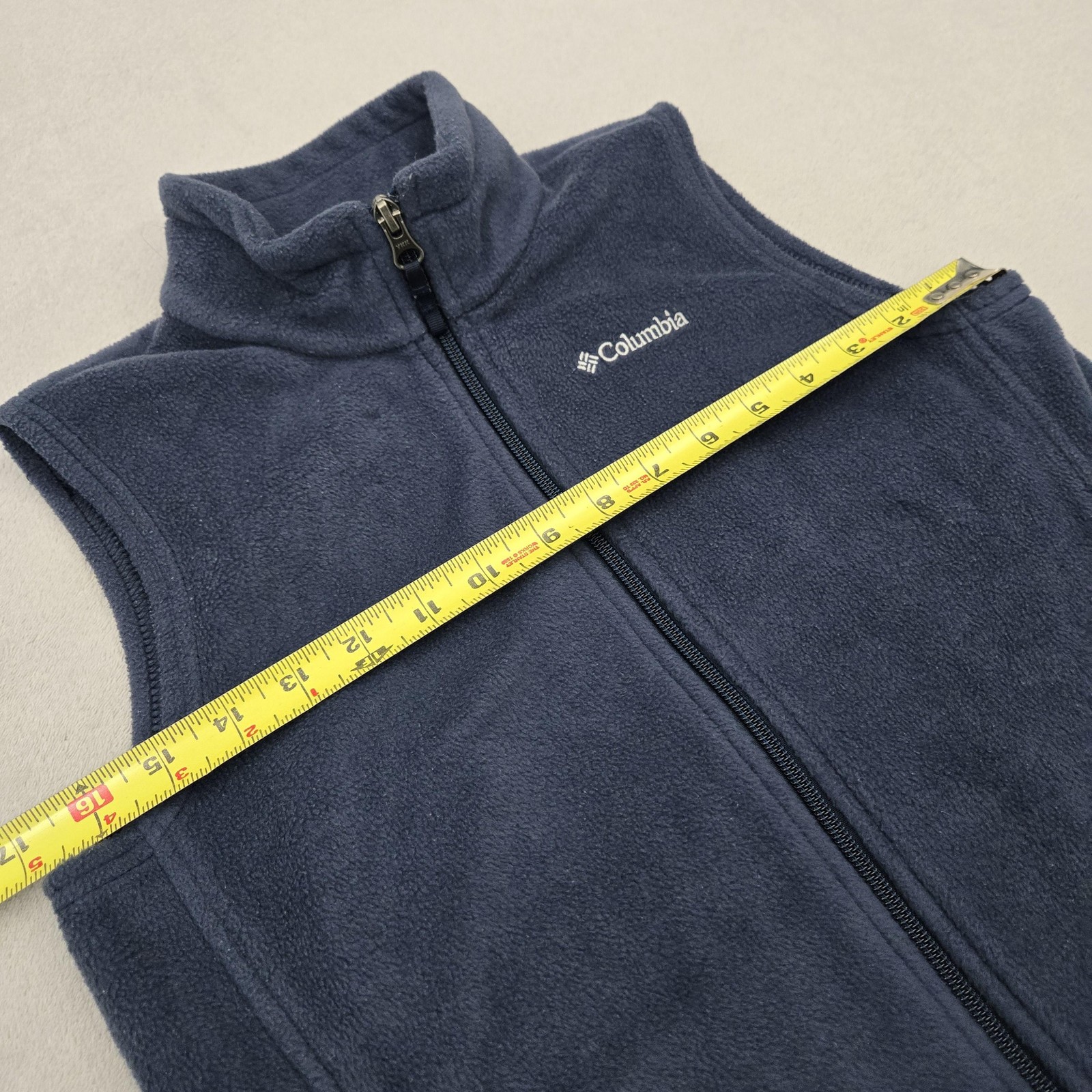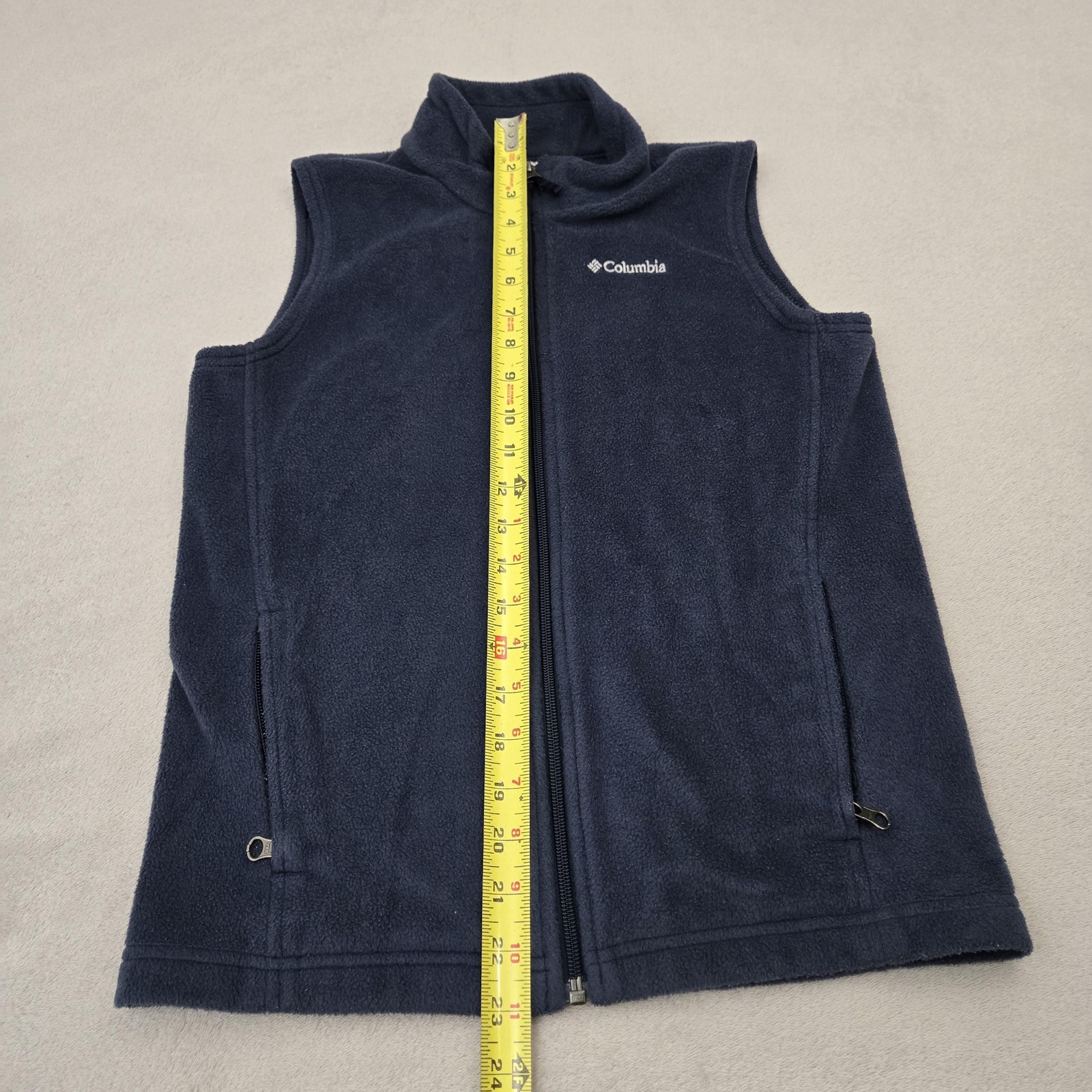 как выглядит Columbia Vest Youth Medium Blue Fleece Full Zip Pockets Outdoor Hiking Warm фото
