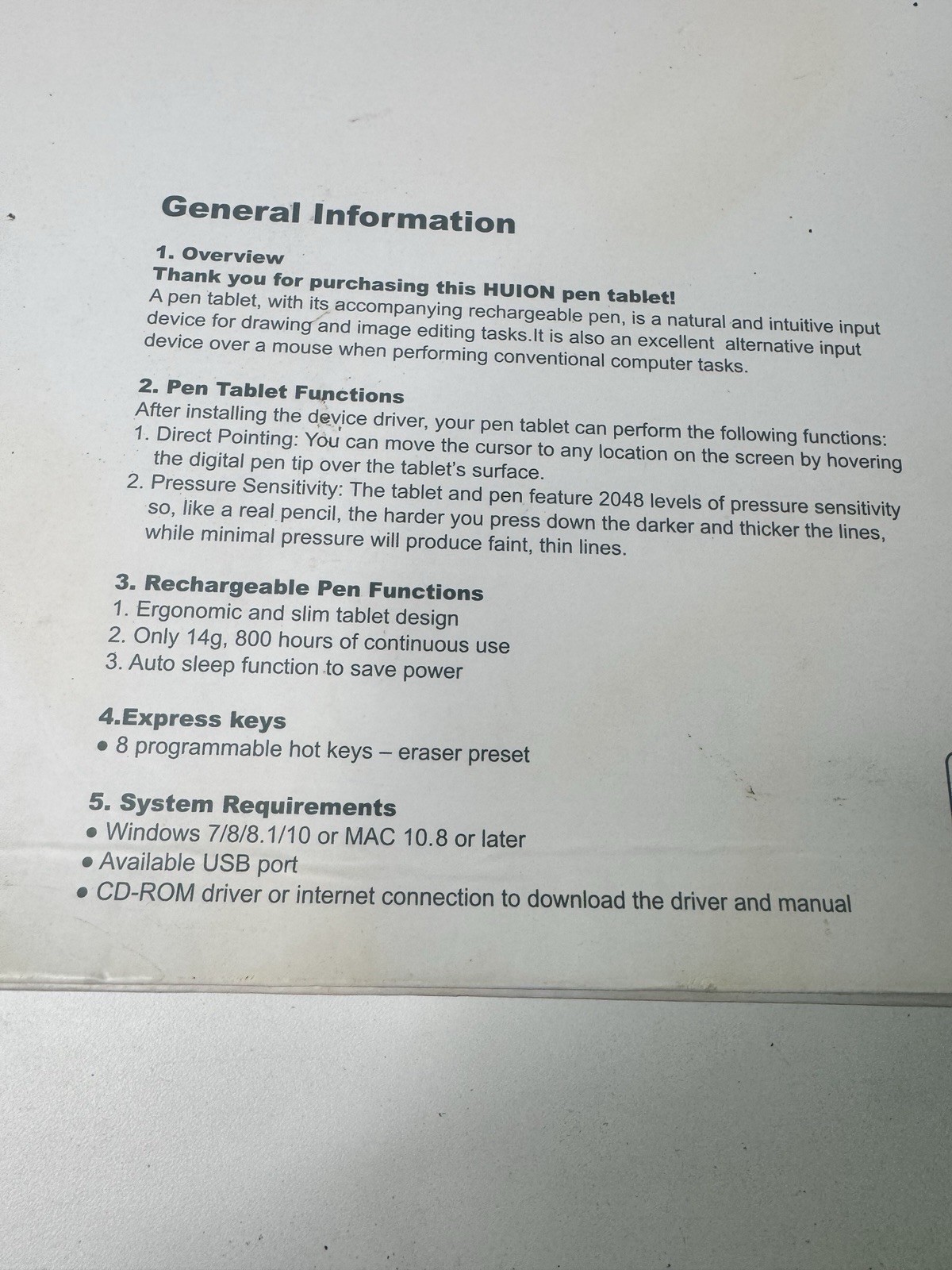 Huion H610PRO Graphic Drawing Tablet w/ Pen Glove USB Tested