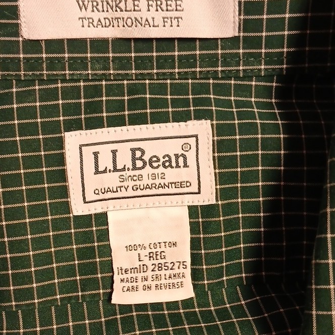 как выглядит L.L. Bean Traditional Fit Green Check Wrinkle Free Cotton Dress Shirt L фото