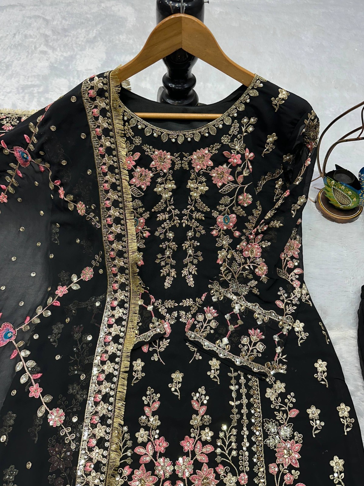Stunning Look Heavy Faux Georgette Black Top Palazzo With Dupatta For Women Wear