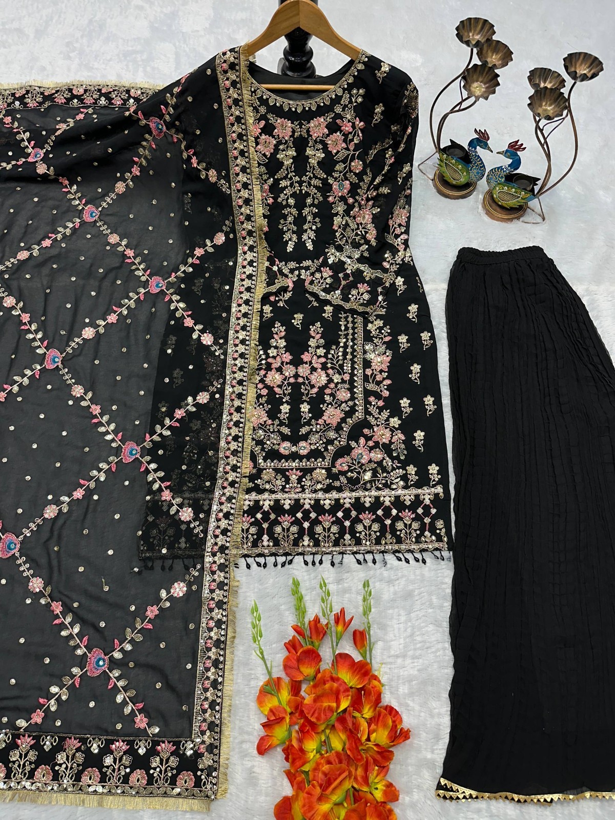 как выглядит Stunning Look Heavy Faux Georgette Black Top Palazzo With Dupatta For Women Wear фото