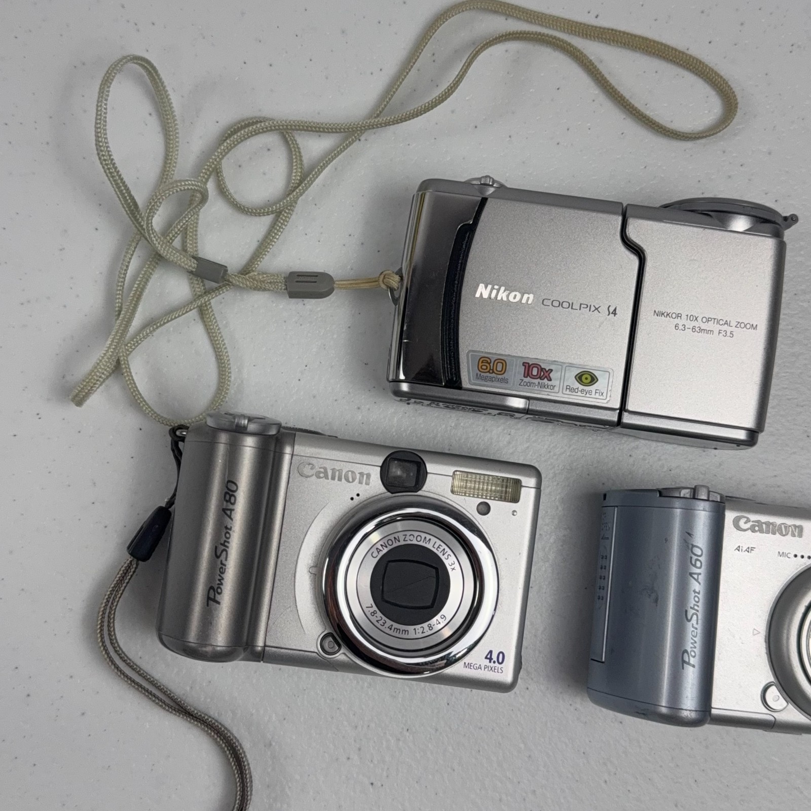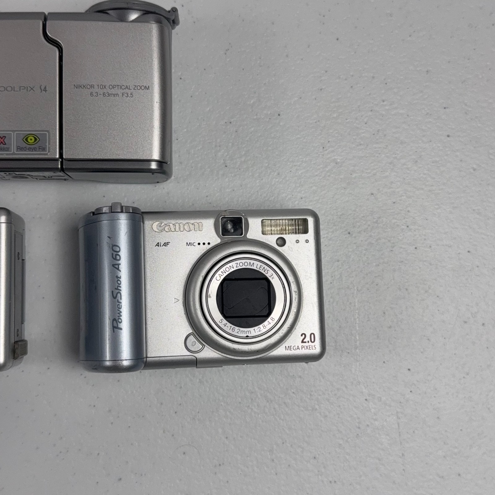 как выглядит Lot Of 3 Canon PowerShot A80 A60 Nikon Coolpix S4 Digital Cameras PARTS AS IS фото