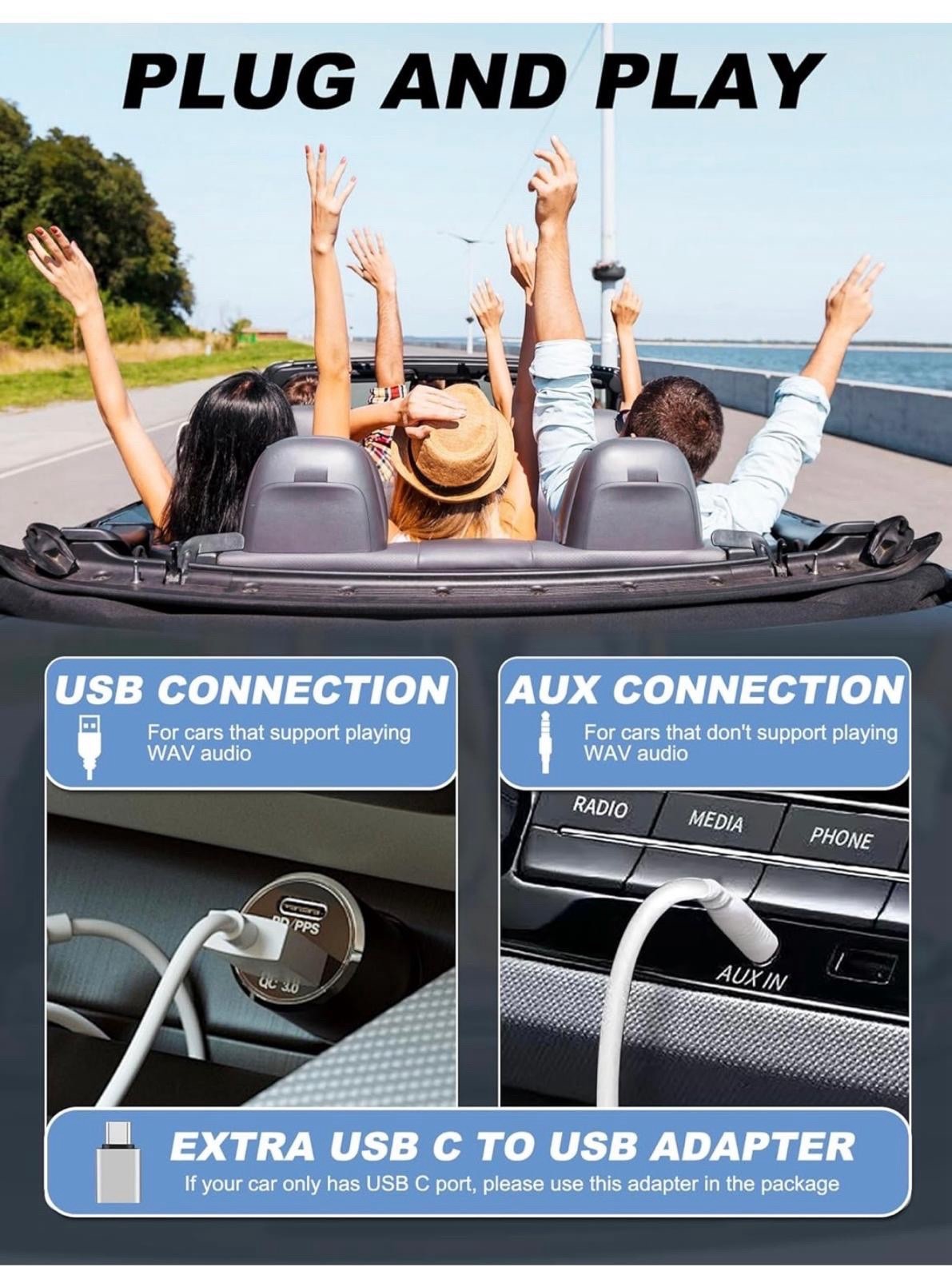 Connectivity: USB, AUX, USB-C