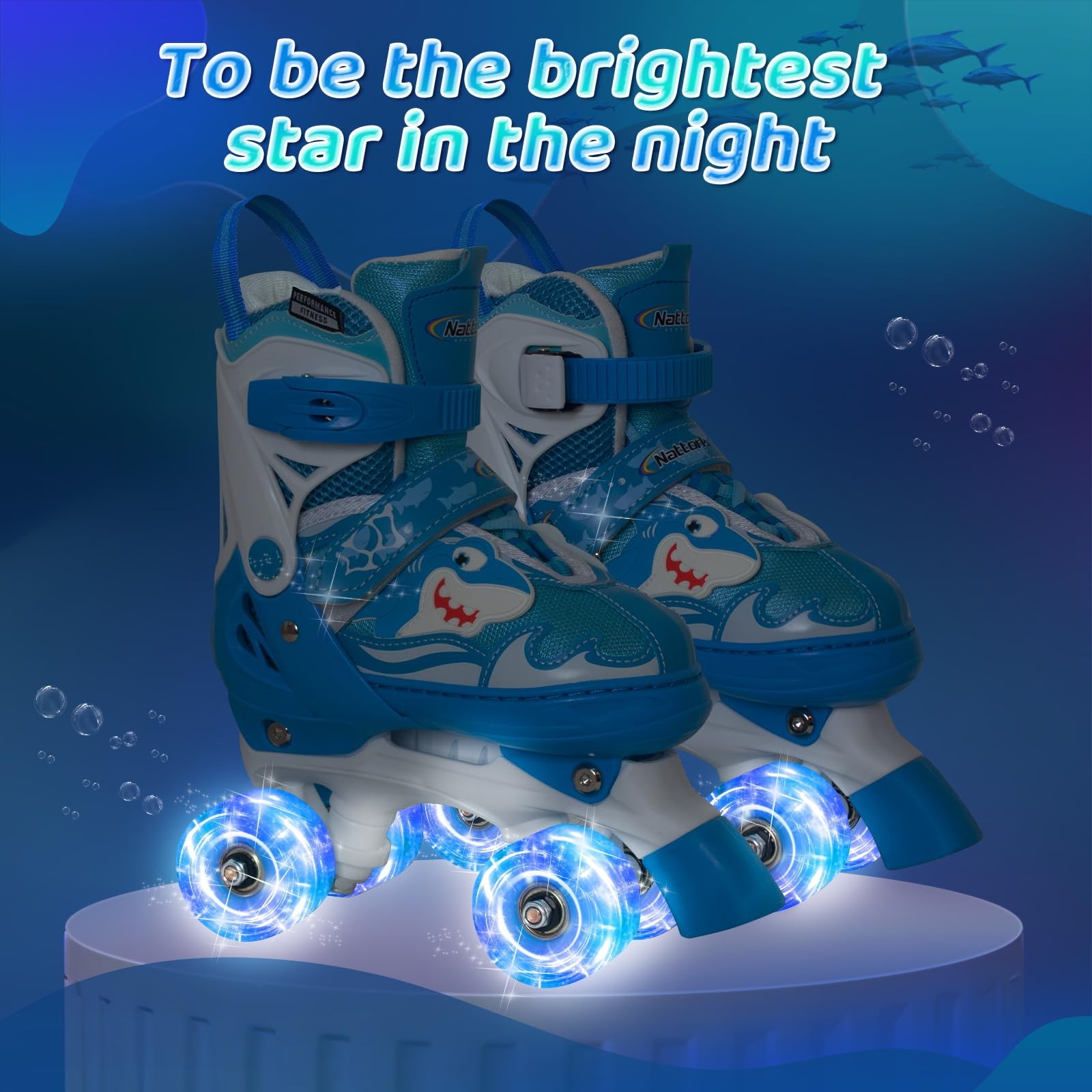 Nattork Kids Adjustable Light-Up Roller Skates for Girls Boys