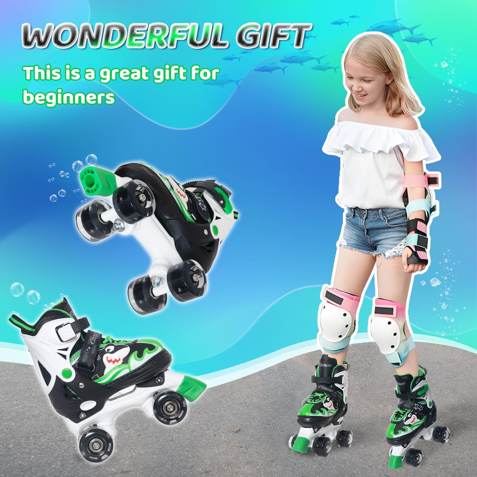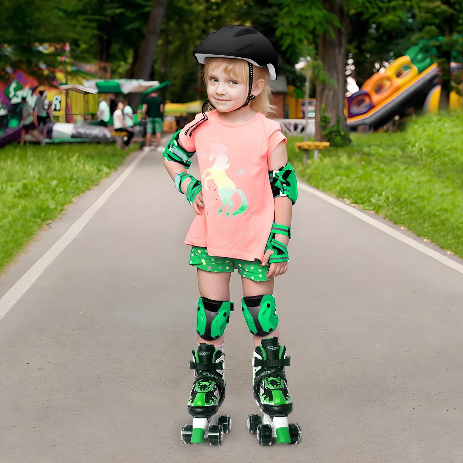 Nattork Kids Adjustable Light-Up Roller Skates for Girls Boys