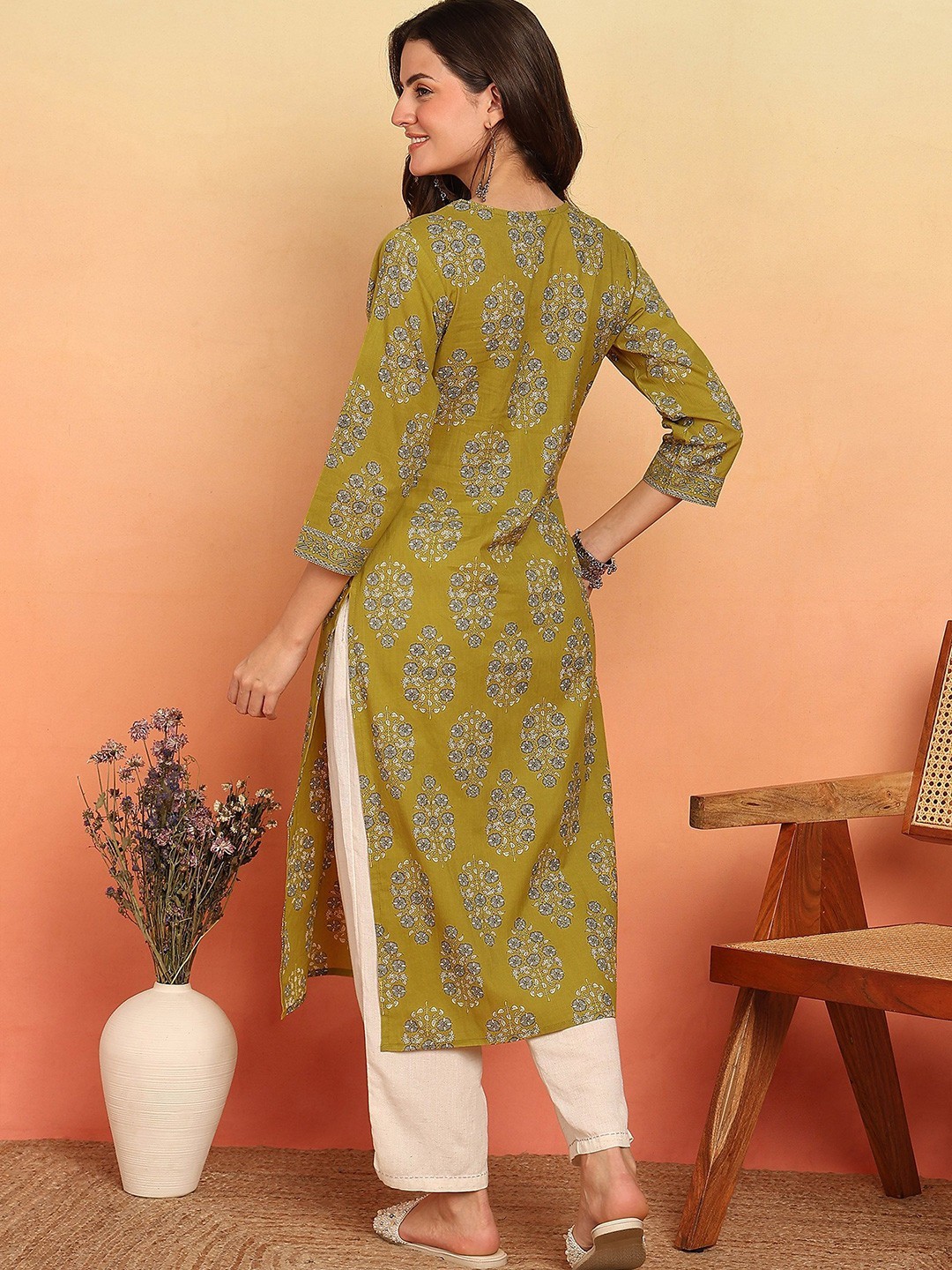 Indian Women BEAUTIFUL Mustard Cotton Floral Printed Kurta Kurti Top Tunic Dress