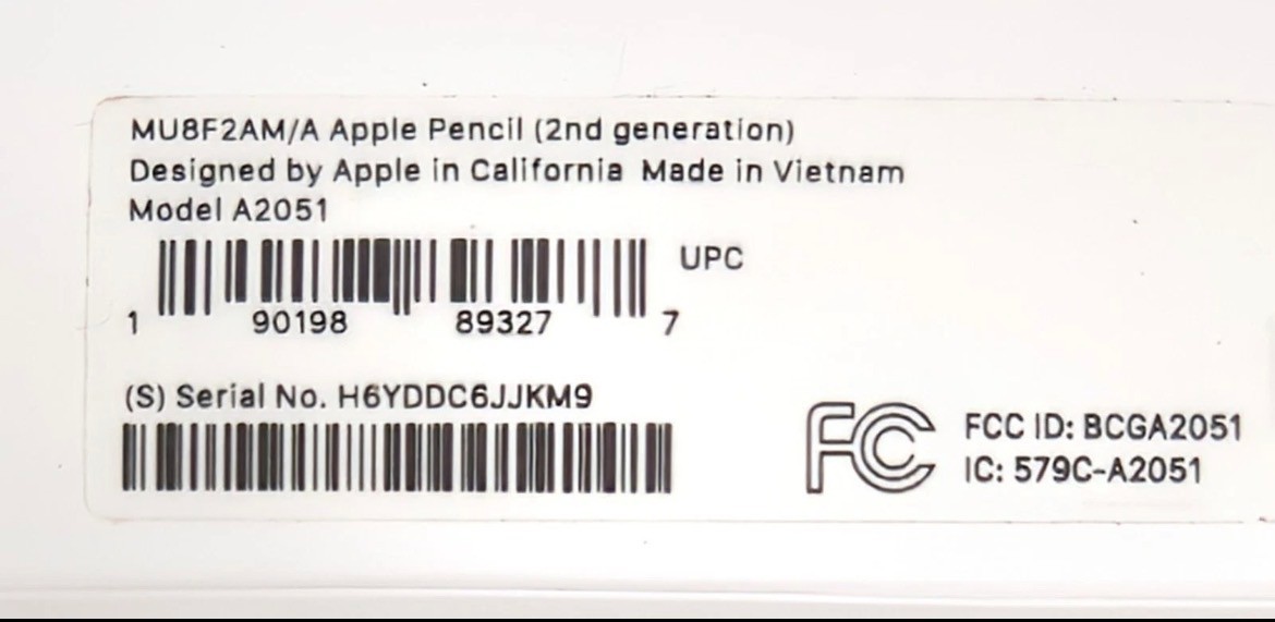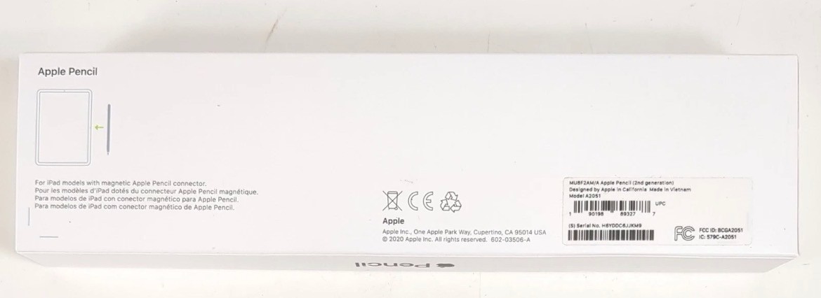 Apple Pencil Stylus 2nd Generation Model A2051 MPN MU8F2AM/A w/ Box Inserts