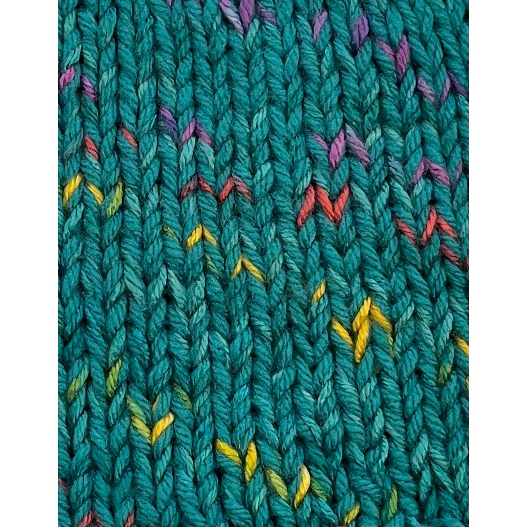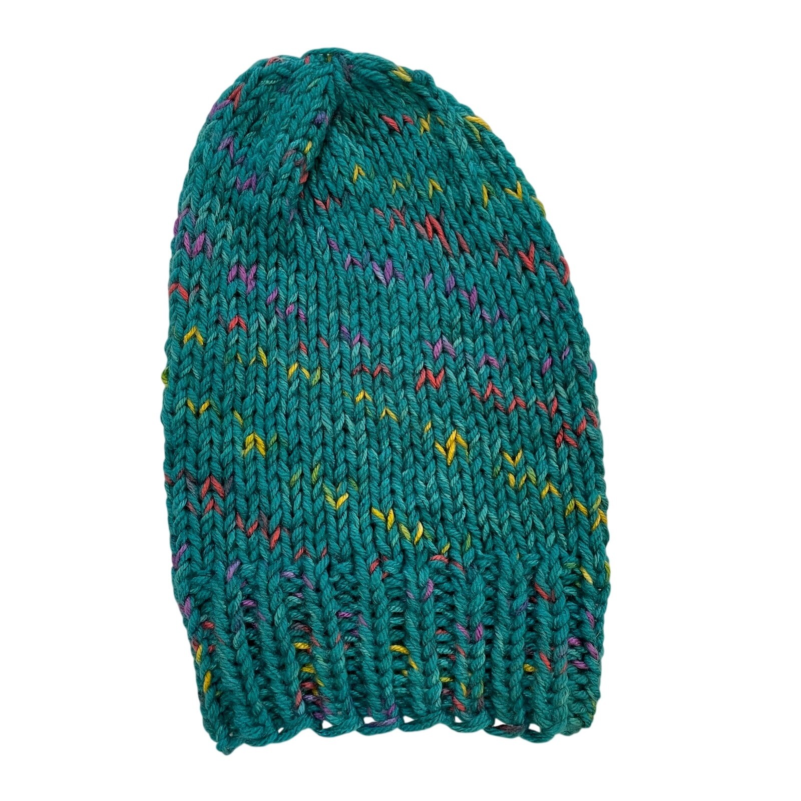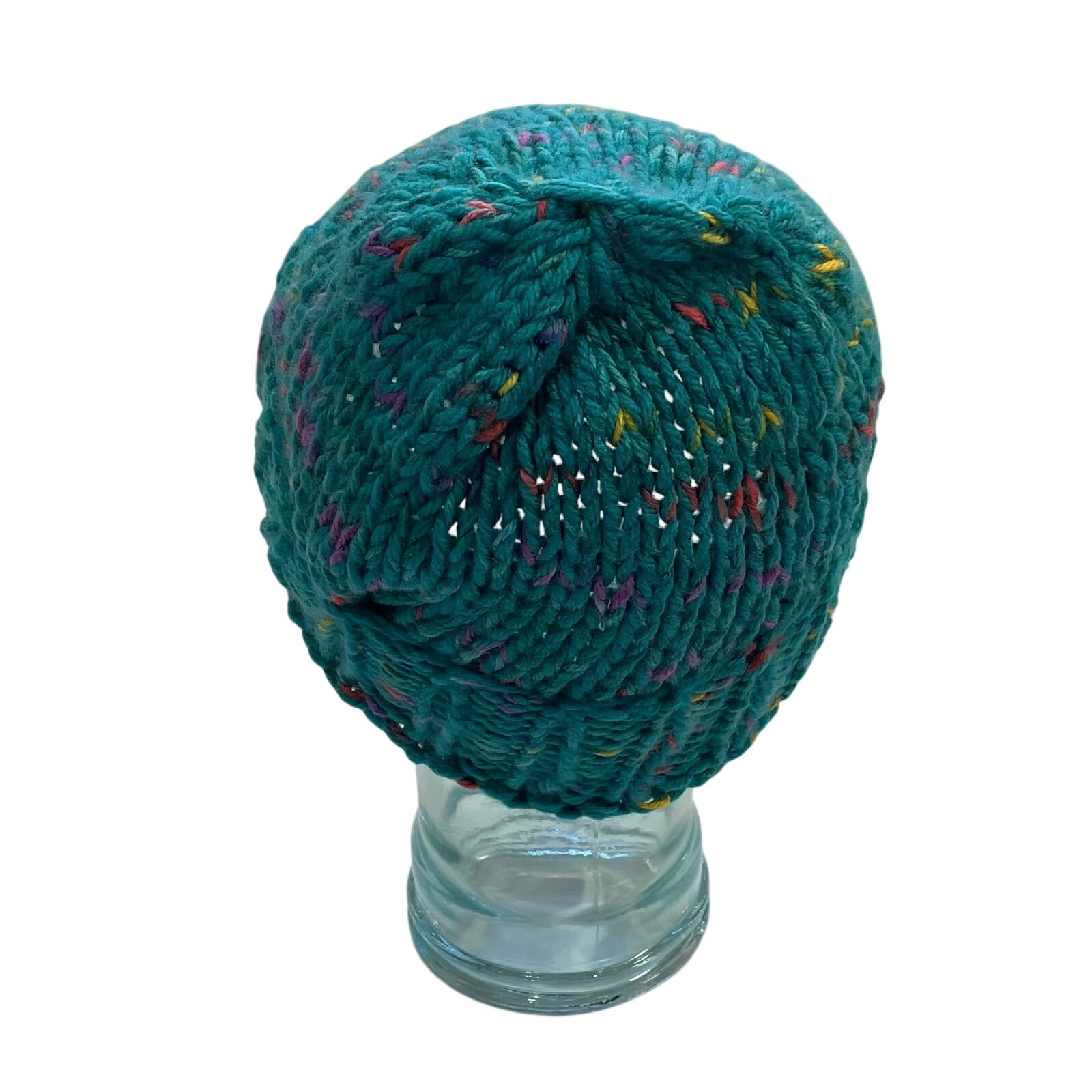 Teal Blue Multicolor Hand Knit Chunky Knit Cuffed Beanie / Hat, OS