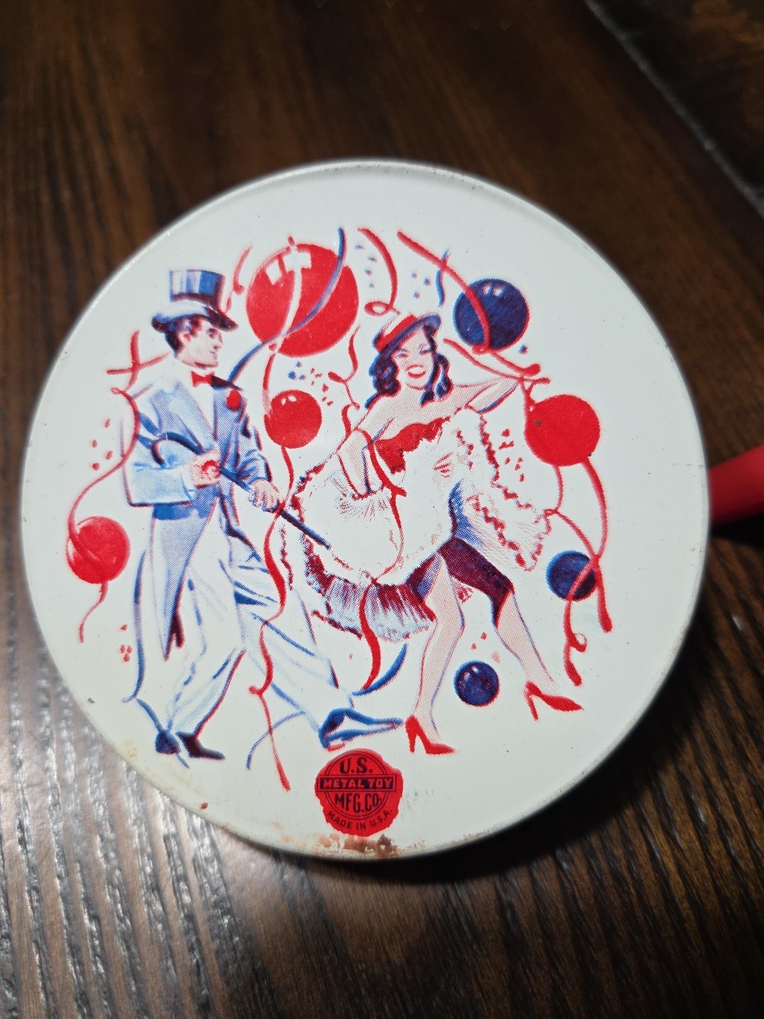 как выглядит Vintage 1950s US Metal Toy Noise maker Dancing people SET OF TWO фото
