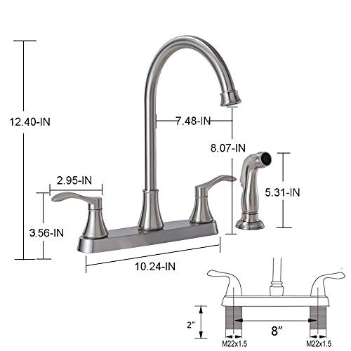 3 Hole or 4 Hole Two Handle Kitchen Faucet with Side Sprayer, Brushed Nickel