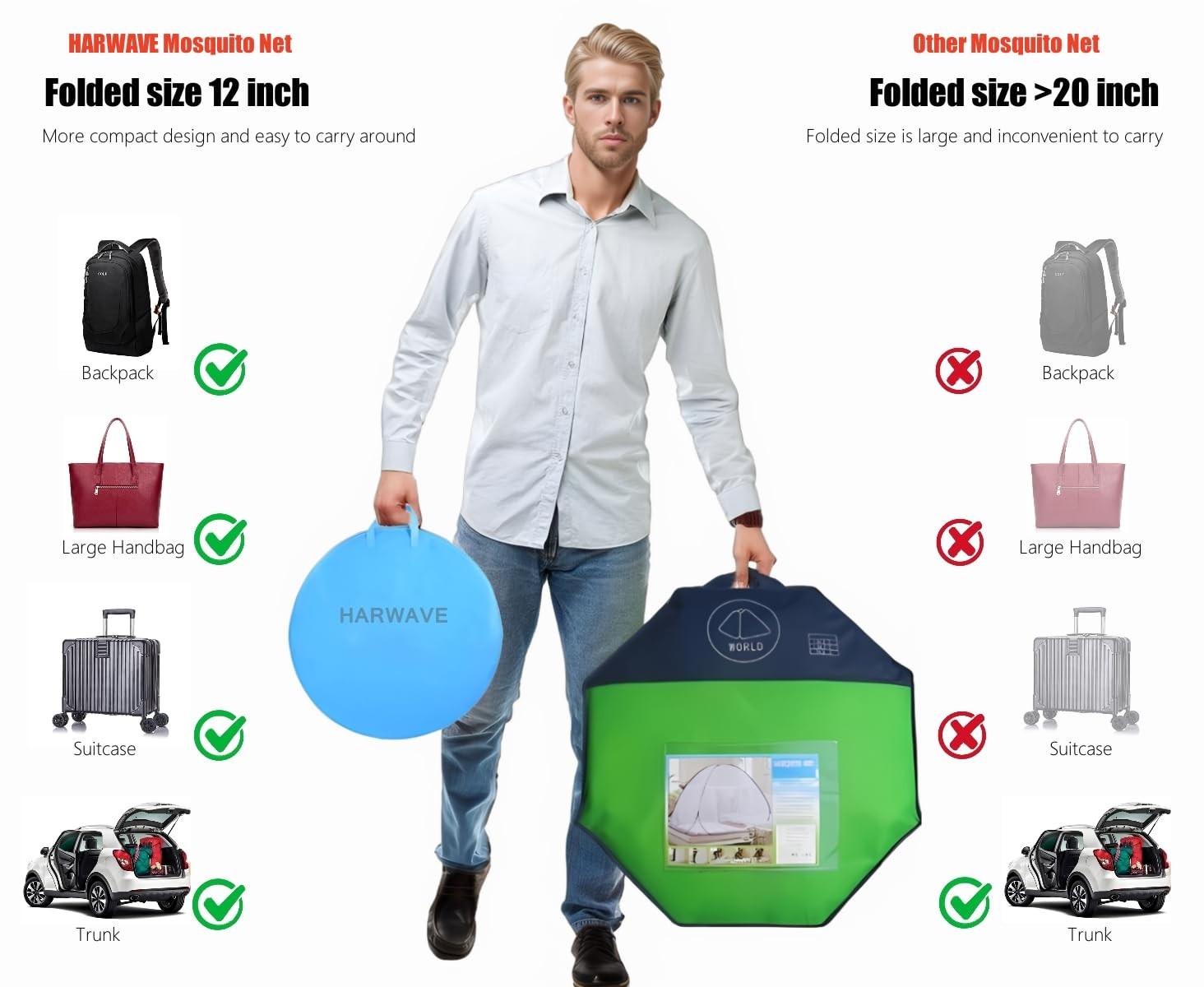 Mosquito Net for Bed, Folded Size 12 inch Portable Camping 59x79x59, Blue