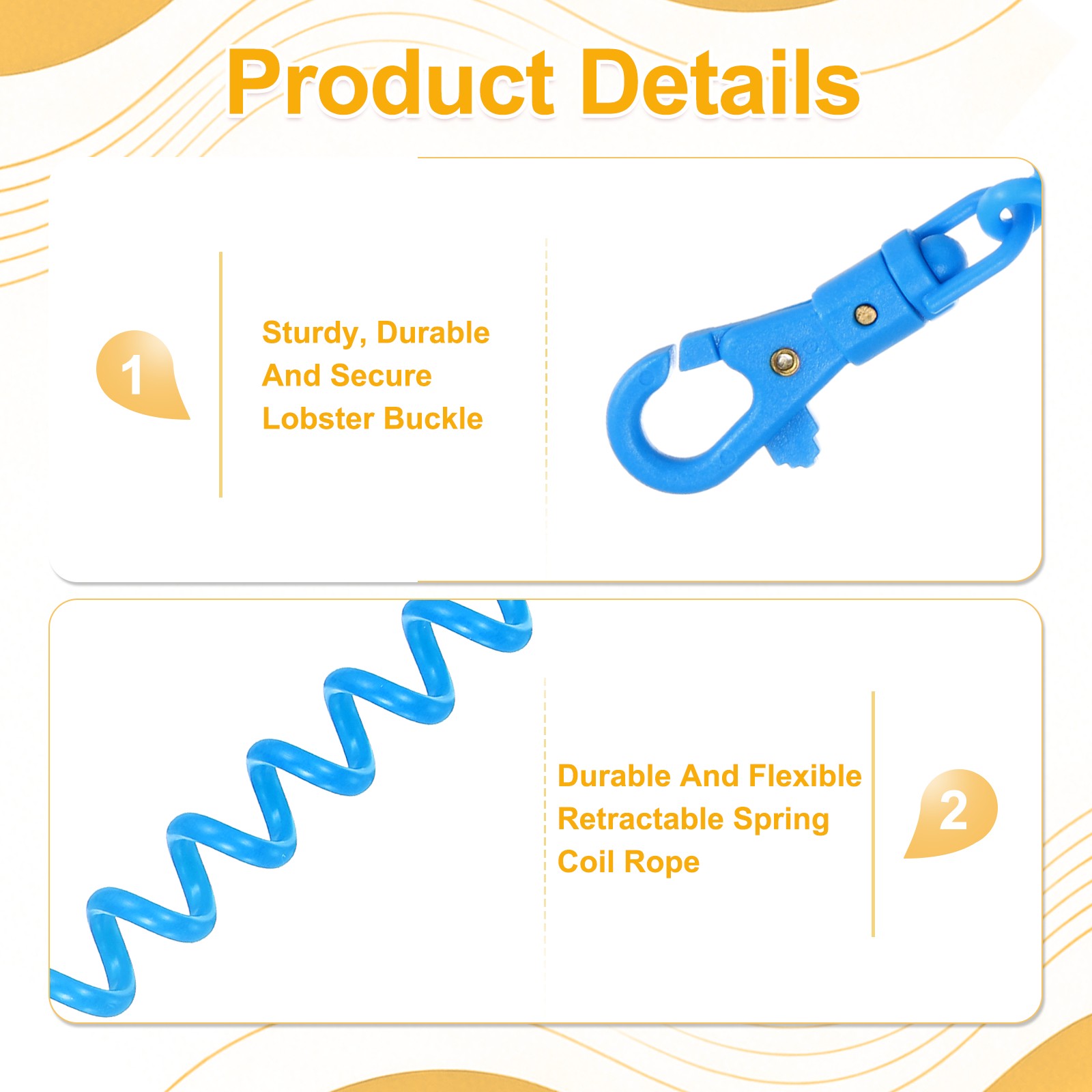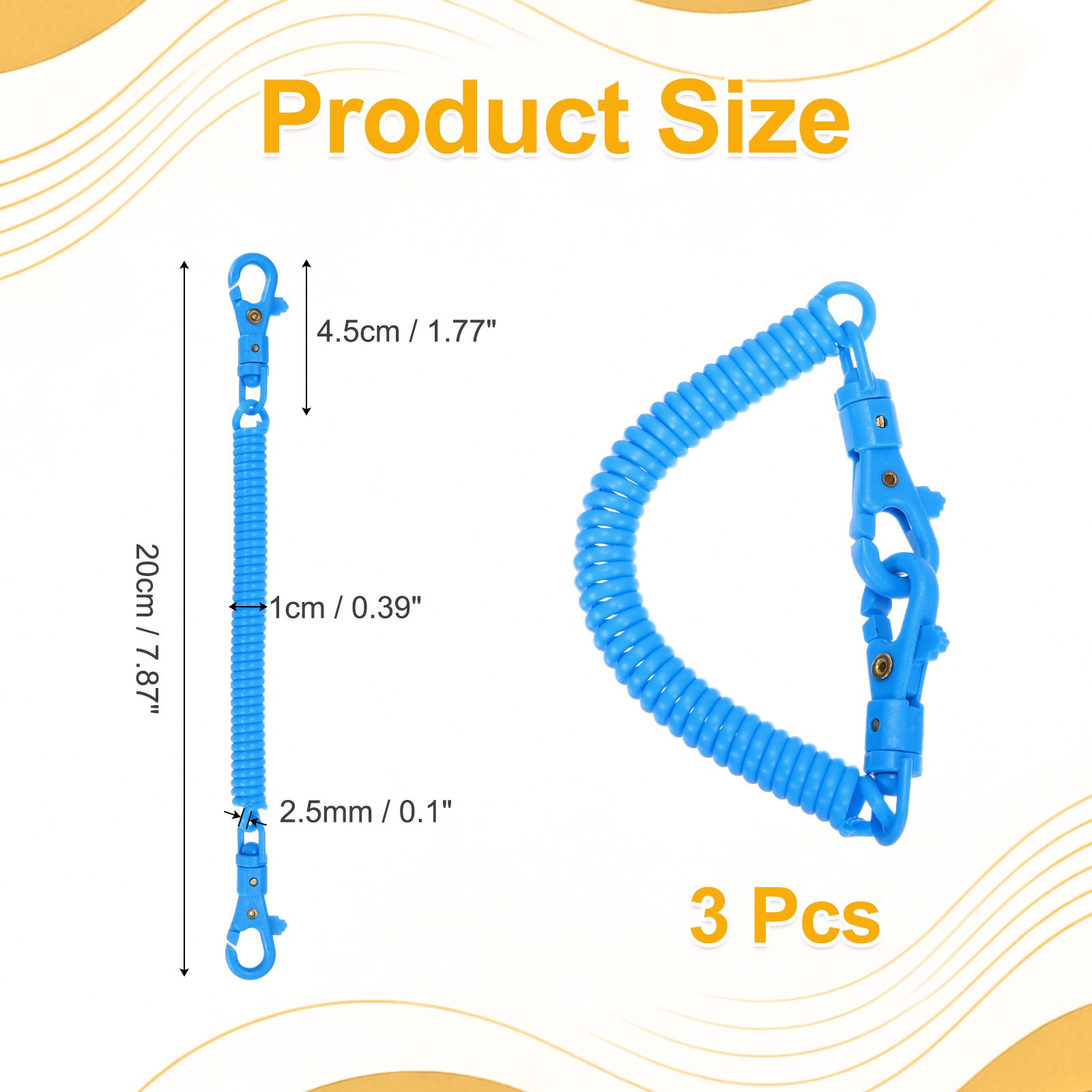 Retractable Coil Keychain W Double Plastic Clasp, 7.9, Lake Blue 3Pcs