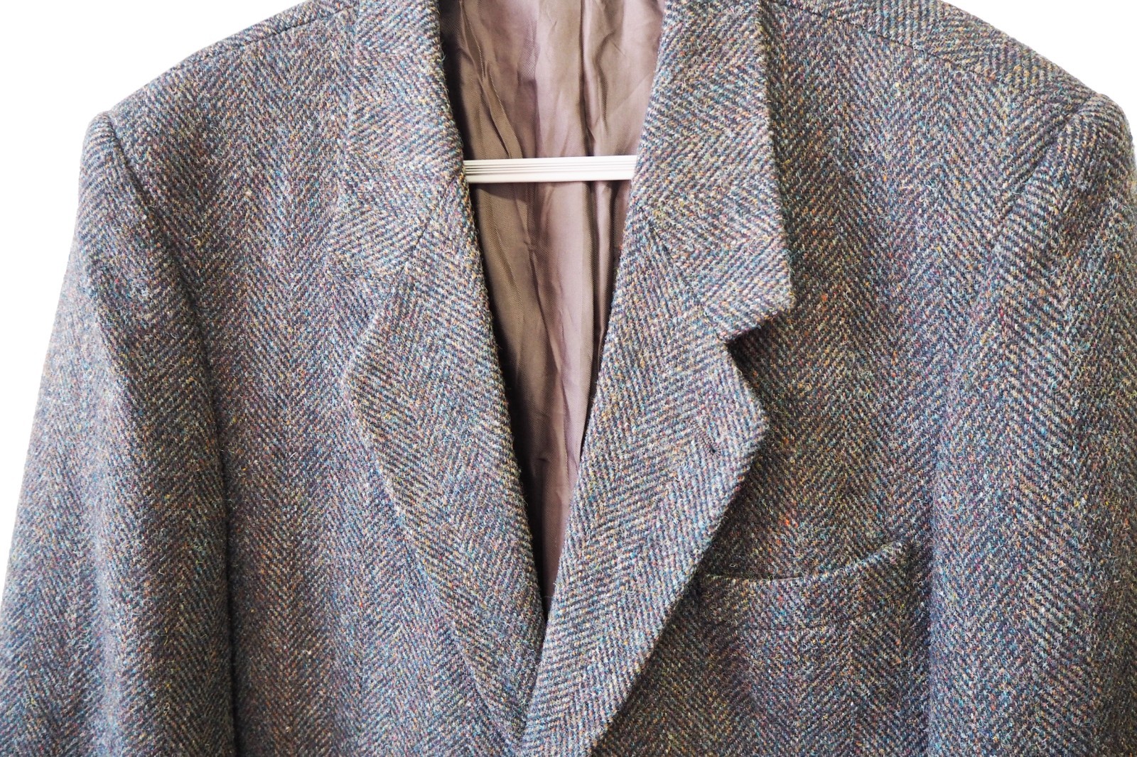 как выглядит Vintage HARRIS TWEED Blazer mens gray wool jacket retro style casual Size L 90s фото