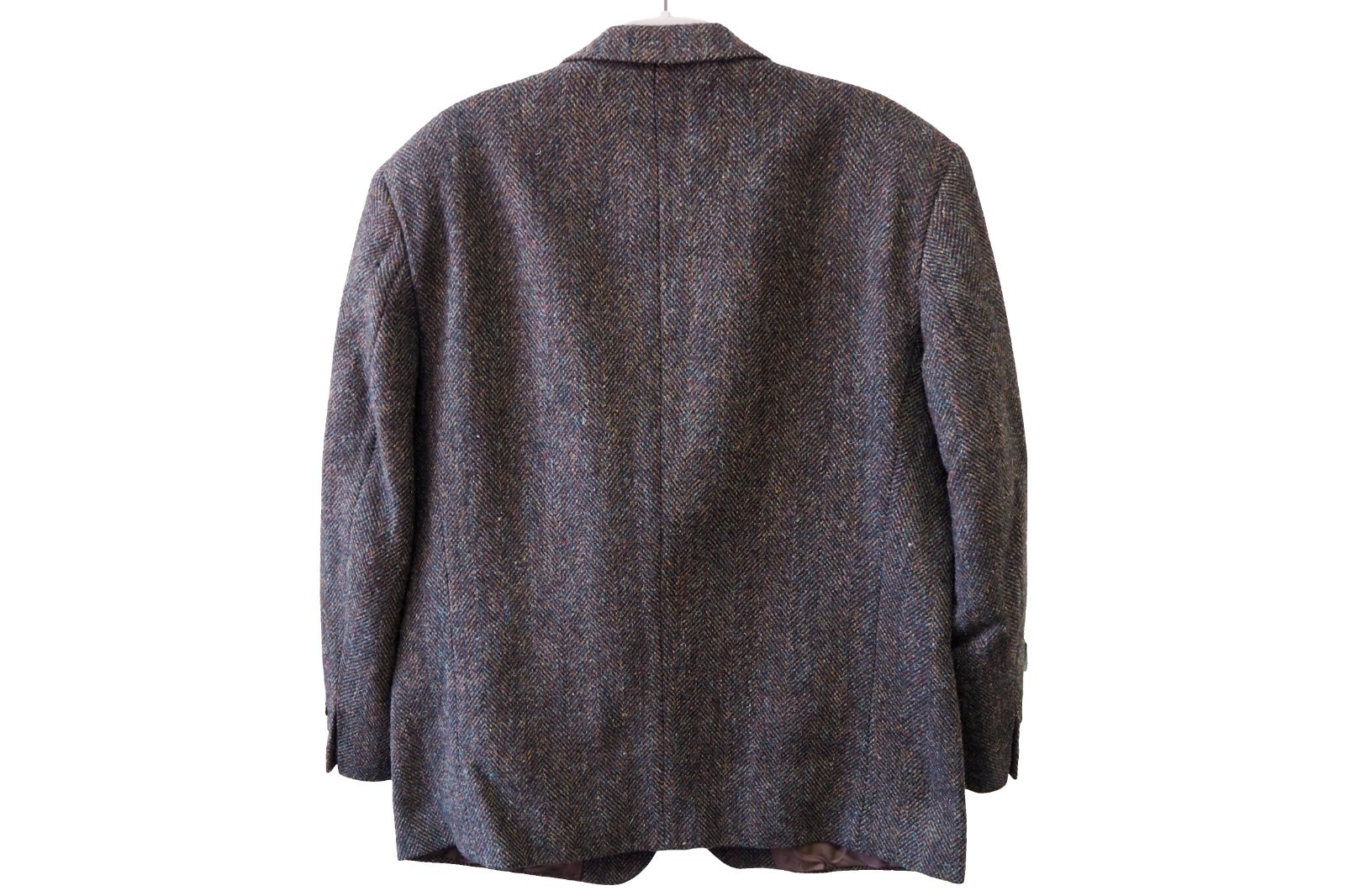 Vintage HARRIS TWEED Blazer men's gray wool jacket retro style casual Size L 90s