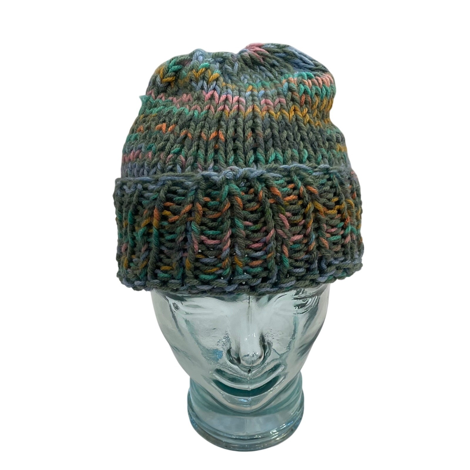 Multicolor Hand Knit Chunky Knit Cuffed Beanie / Hat, OS