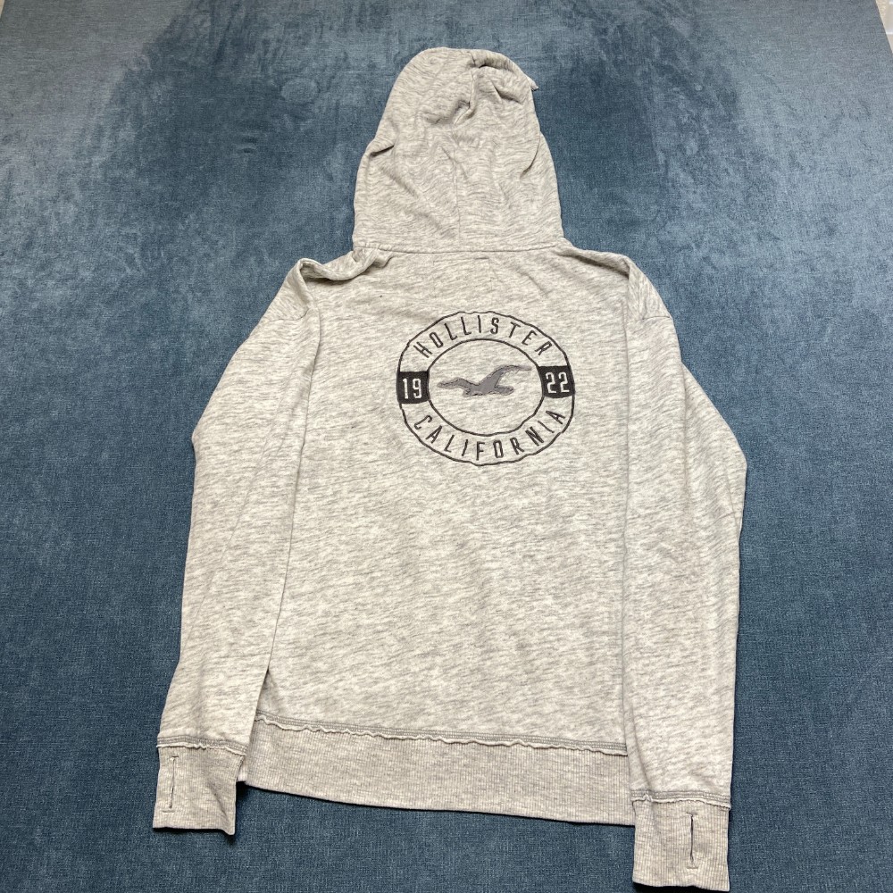 как выглядит Hollister Hoodie Womens L Heather Gray Fleece Lined Drawstring Thumbhole Sleeve фото