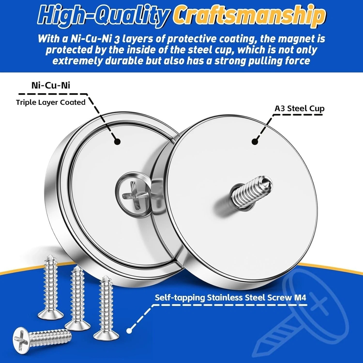 8 Pack 100LBS Neodymium Cup Magnets - Heavy Duty with Countersunk Hole Screws