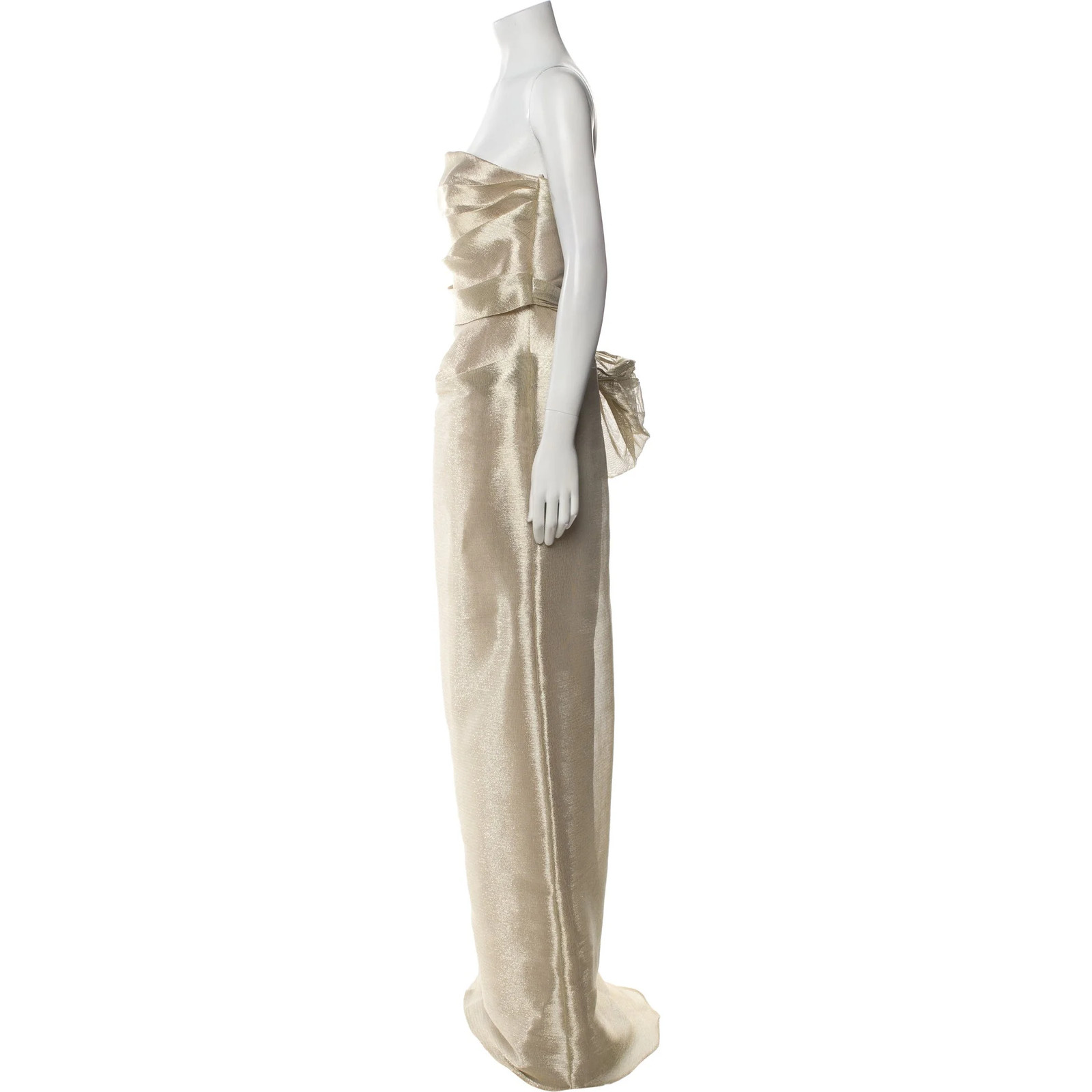 как выглядит Tarik Ediz Evening Gown Strapless Formal Dress Women US 4 Champagne Elegant фото