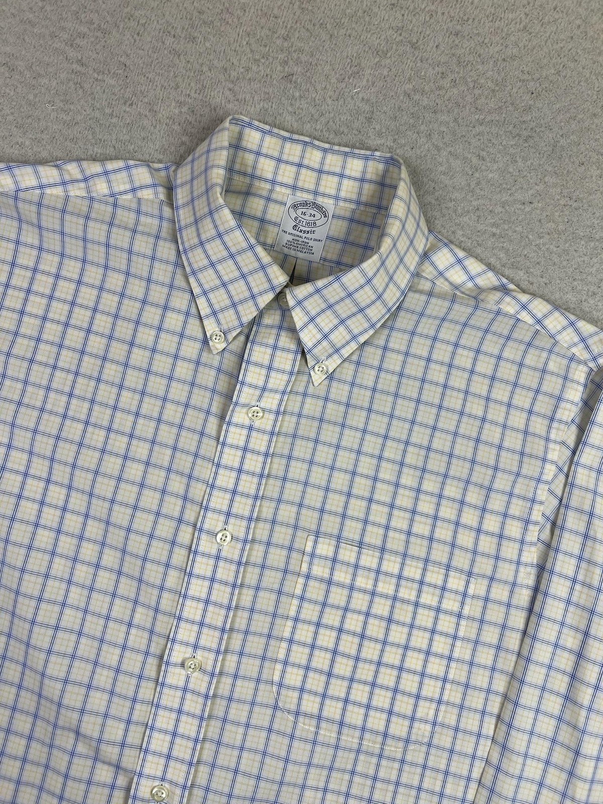 как выглядит Brooks Brothers Dress Shirt Mens 16 34/35 Blue Check Classic Non Iron LS фото