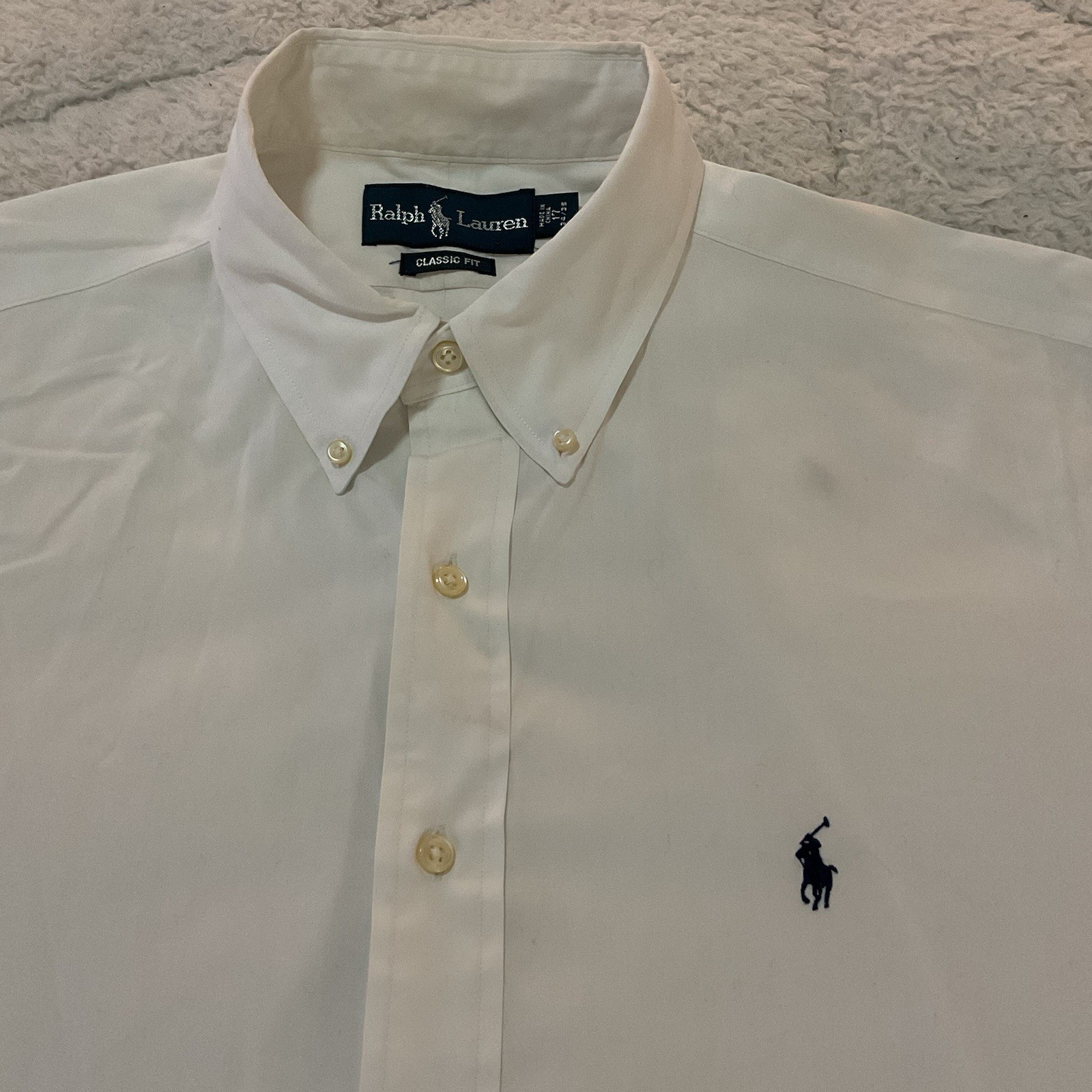 Ralph Lauren Classic Fit Button Down White L/S Dress Shirt Mens 17 - 34/35