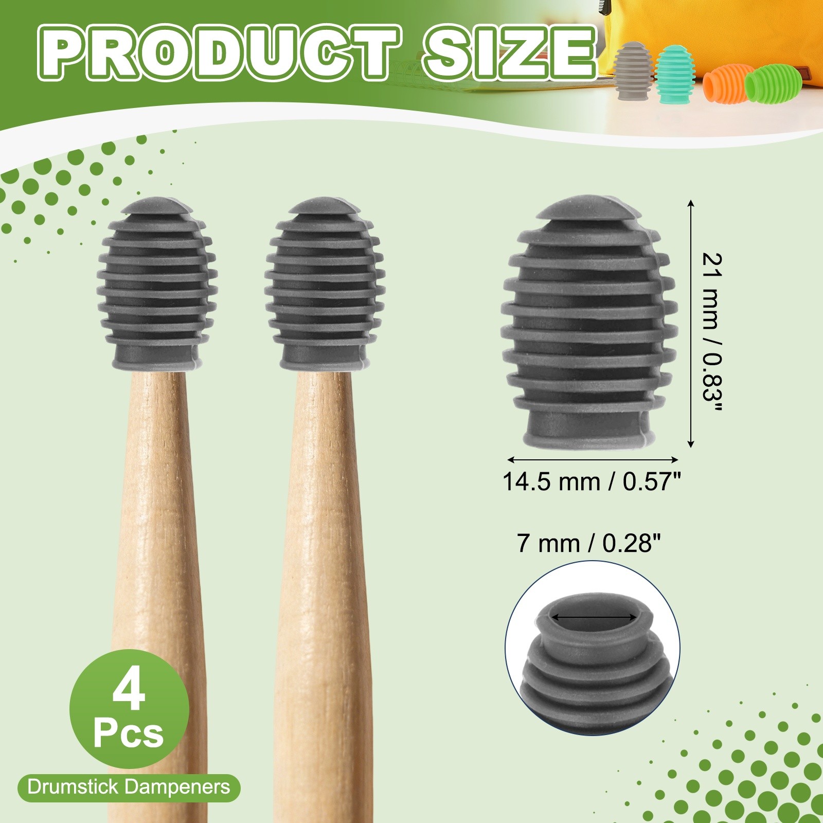 как выглядит 4 Pcs Drumstick Dampeners Grid for Silent Practice Fits 5A Drum Sticks Dark Gray фото