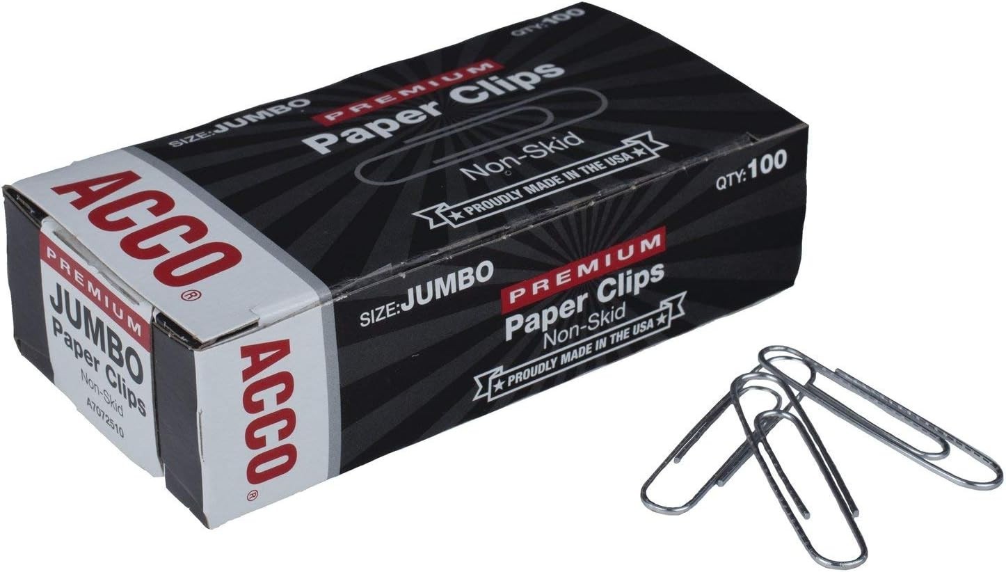 ACCO Non-Skid Jumbo Paper Clips - 100 Count, Stylish Silver, Ultimate Durability