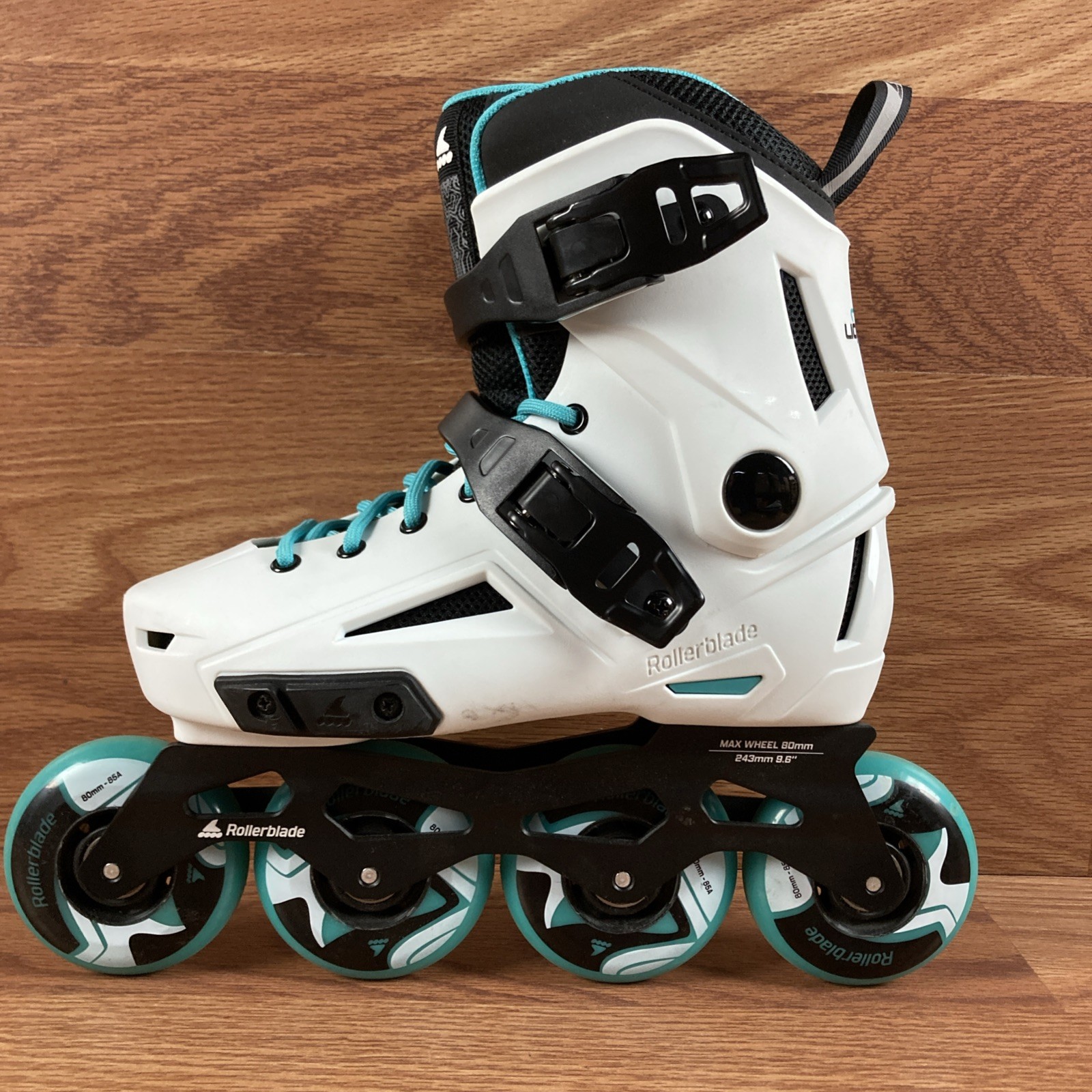 Rollerblade Lightning Womens Inline Skates Size 5/5.5 White Aqua 80mm Wheels