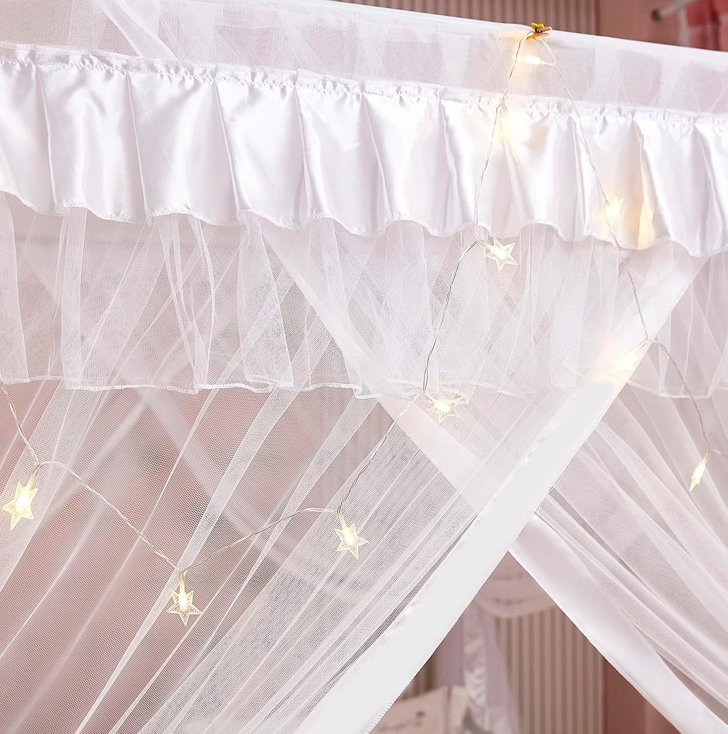 как выглядит Princess Twin Bed Canopy Curtain Mosquito Netting White for Girls фото